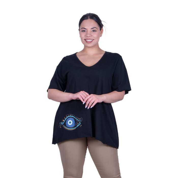 Original price was: €24.90.€18.90Η τρέχουσα τιμή είναι: €18.90.Fairyland Μπλούζα Μαύρη Γυναικεία Κοντομάνικη Ασύμμετρη Φαρδιά All Day Free Size – FM-8546-BC