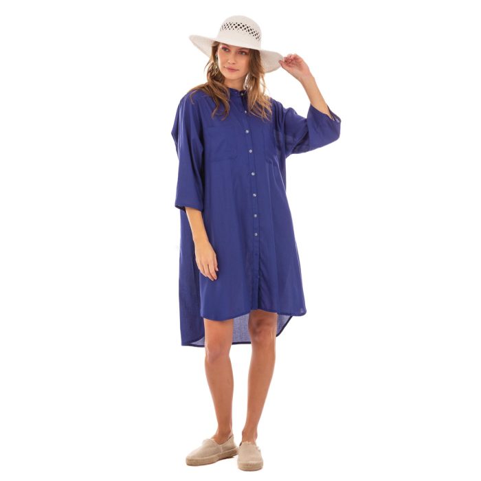 Original price was: €86.90.€56.90Η τρέχουσα τιμή είναι: €56.90.Platinum Πουκαμίσα – Φόρεμα Γαλάζια Γυναικεία Λινή Τρουακάρ Μακριά Με Κουμπιά All Day Free Size – LN-107-BL
