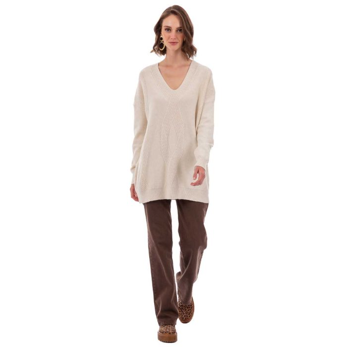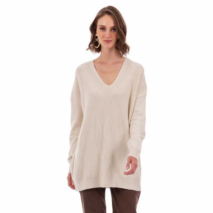 Original price was: €59.90.€44.90Η τρέχουσα τιμή είναι: €44.90.Platinum Μπλούζα Εκρού Γυναικεία Μακριά Με Ντεκολτέ Πλεκτή All Day Free Size – 3283