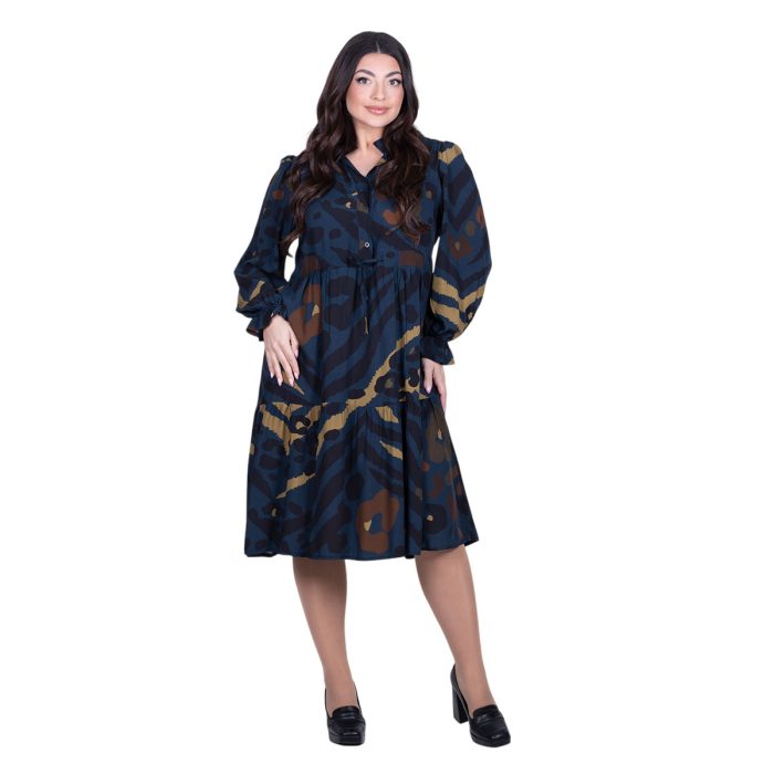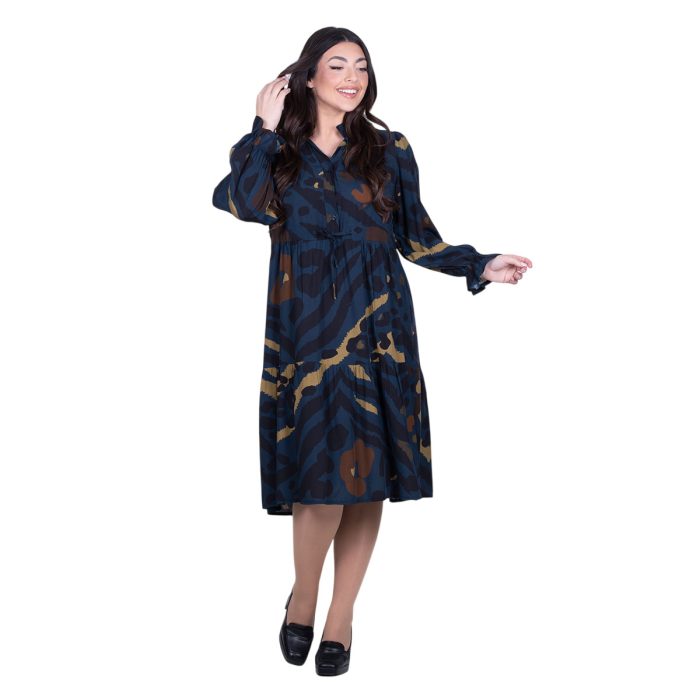 Platinum Φόρεμα Πετρολ Με Animal Print Σχέδιο Γυναικείο Πλισέ Ριχτό All Day Free Size – IT-261-GU