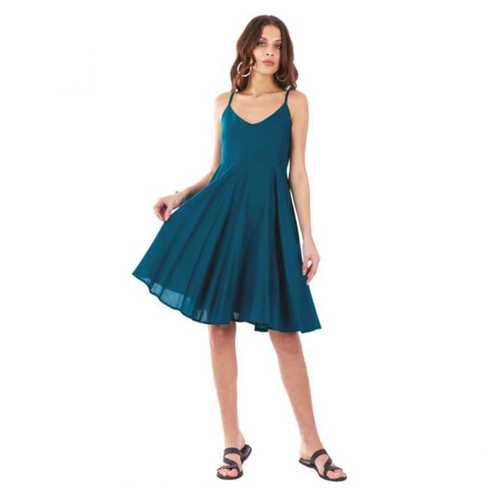 Original price was: €29.90.€22.90Η τρέχουσα τιμή είναι: €22.90.Platinum Φόρεμα Πετρόλ Γυναικείο Τιραντέ Εξώπλατο Αέρινο Klos Girly Free Size – 22122-PE
