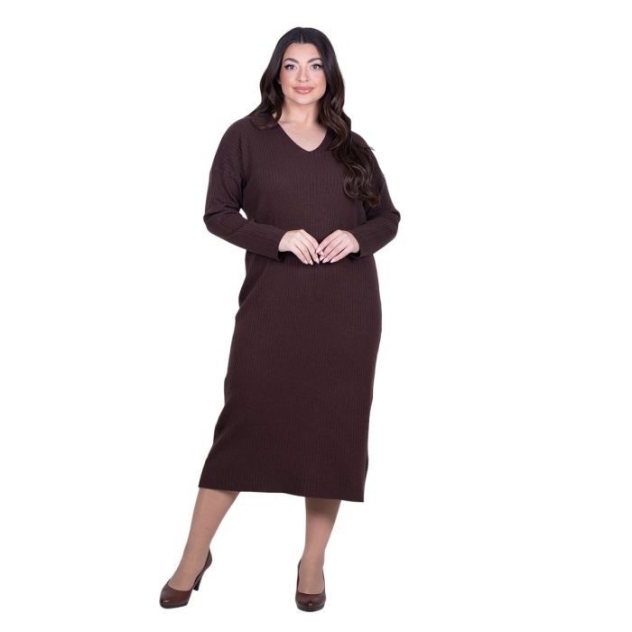 Original price was: €64.90.€44.90Η τρέχουσα τιμή είναι: €44.90.Fairyland Φόρεμα Καφέ Γυναικείο Πλεκτό Μidi Με Ντεκολτέ Casual All Day Free Size – FM-70068-DC