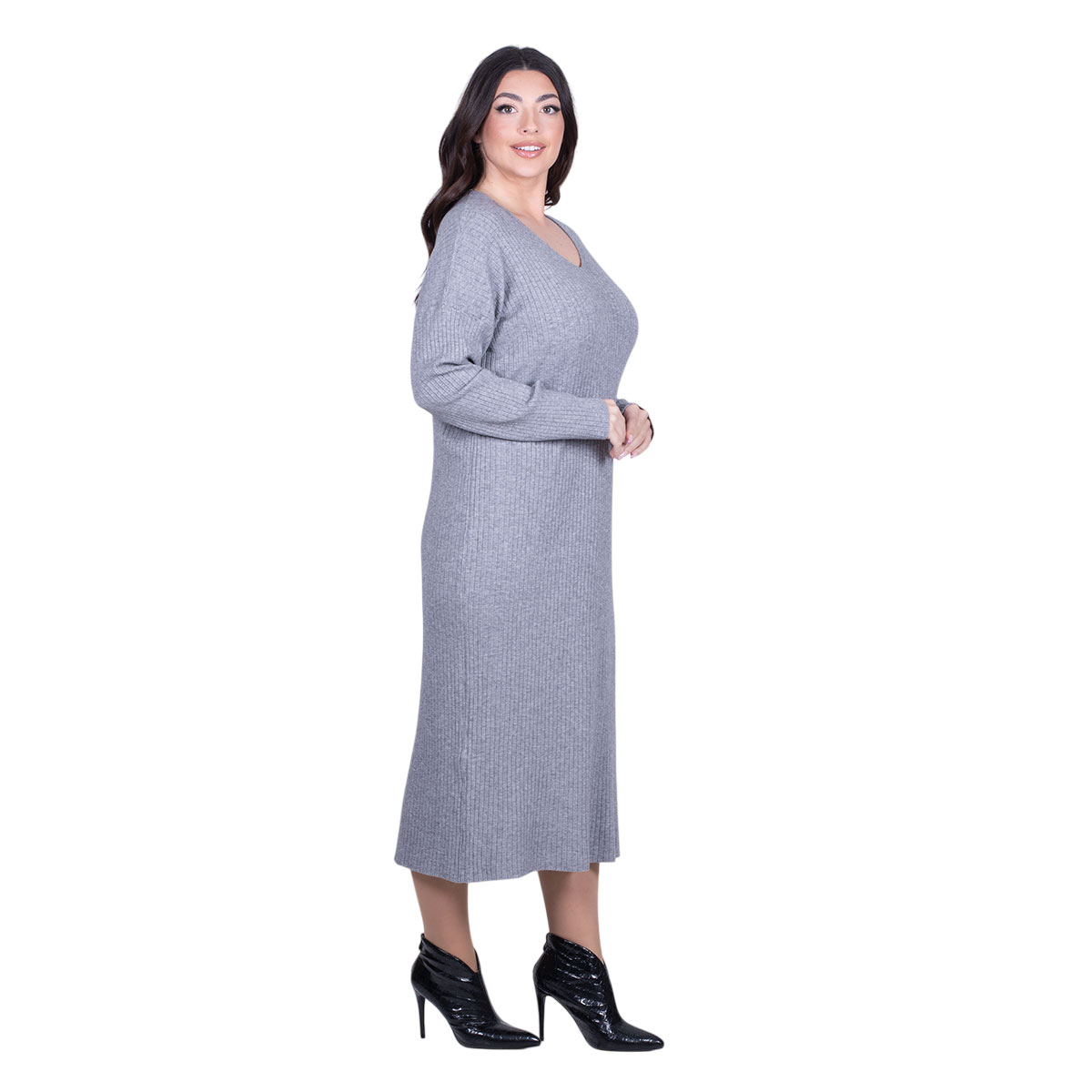Fairyland Φόρεμα Γκρι Γυναικείο Πλεκτό Μidi Με Ντεκολτέ Casual All Day Free Size – FM-70068-GR