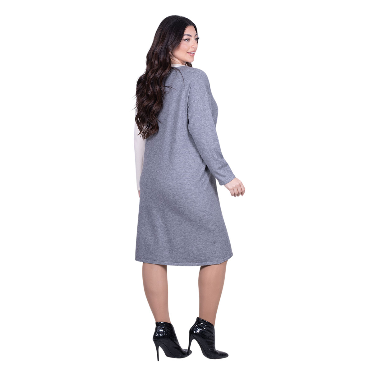 Fairyland Φόρεμα Γκρι Με Μαύρο & Εκρού Γυναικείο Πλεκτό Μidi Casual All Day Free Size – FM-1062-GR