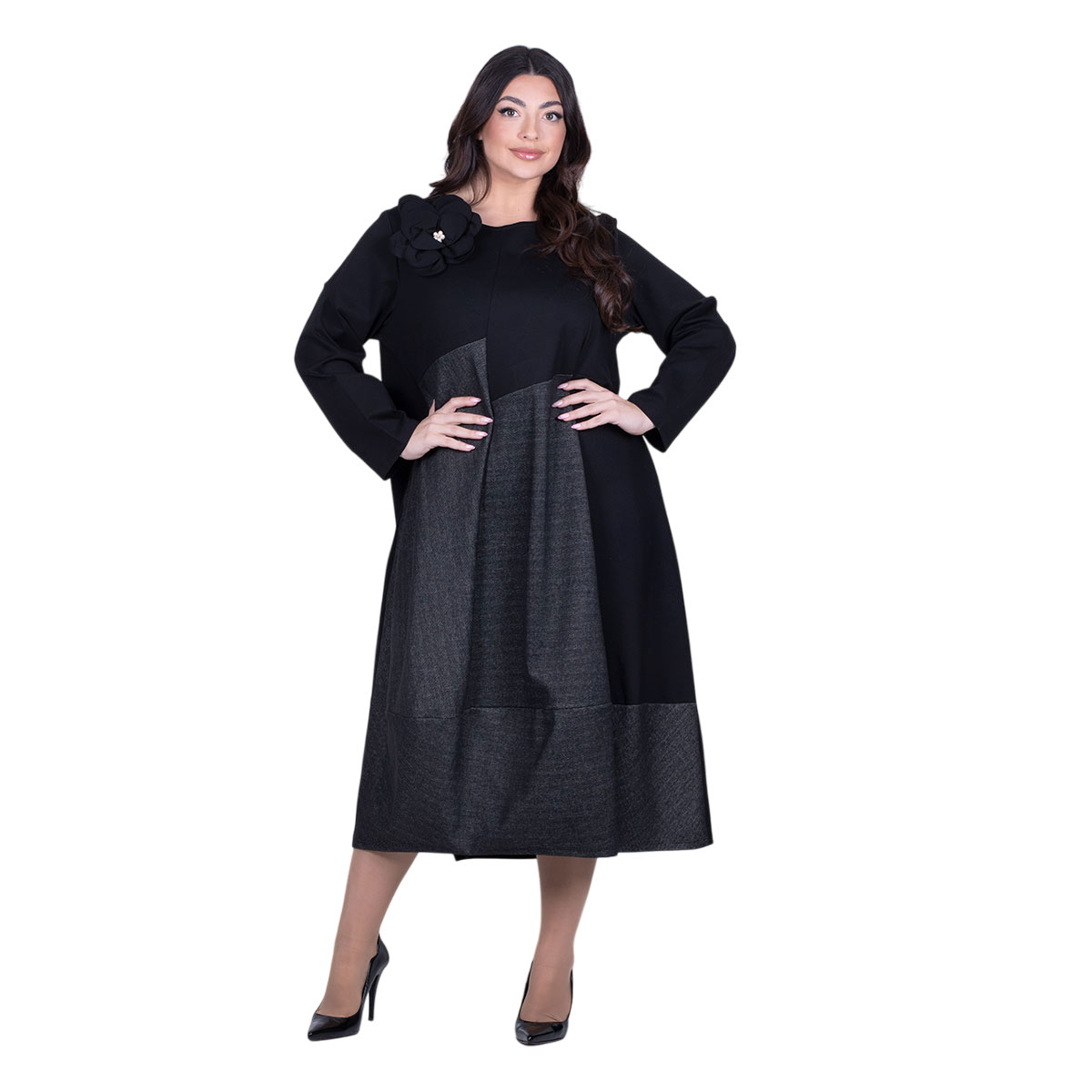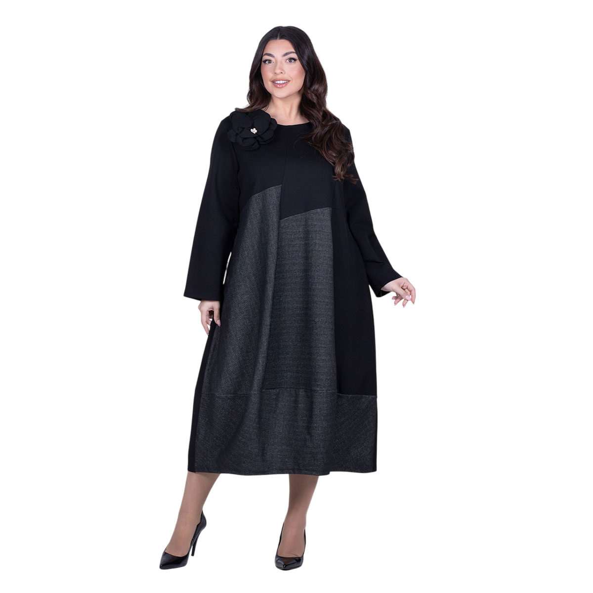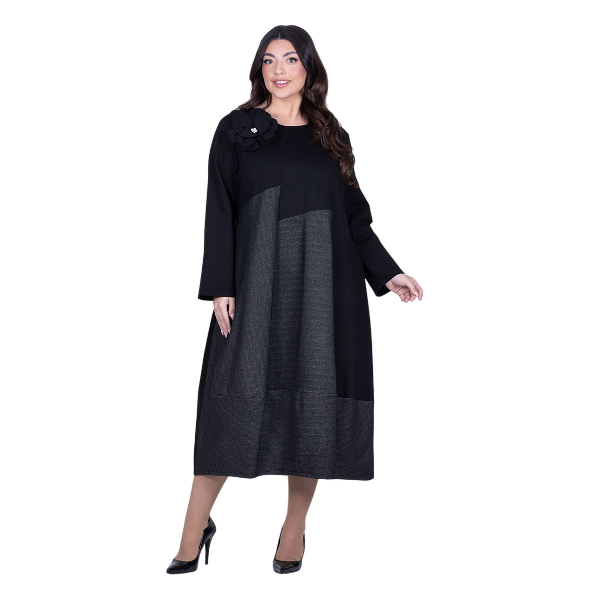 Fairyland Φόρεμα Μαύρο – Γκρι Γυναικείο Midi Εβαζέ All Day Free Size – FM-1020-GR