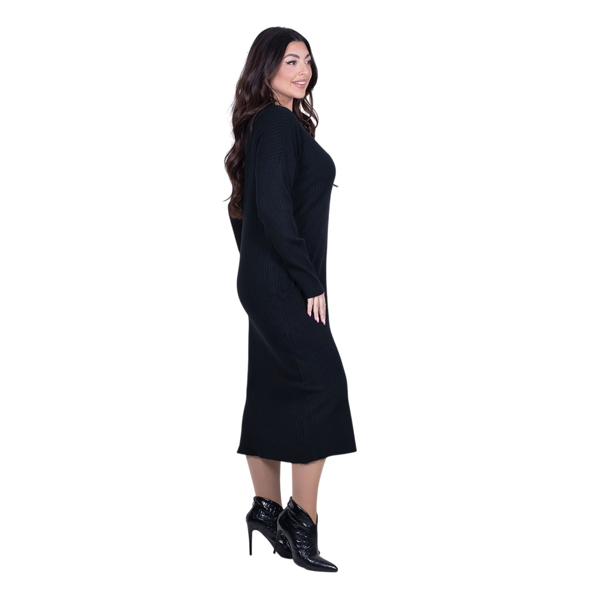Fairyland Φόρεμα Μαύρο Γυναικείο Πλεκτό Μidi Με Ντεκολτέ Casual All Day Free Size – FM-70068-BC