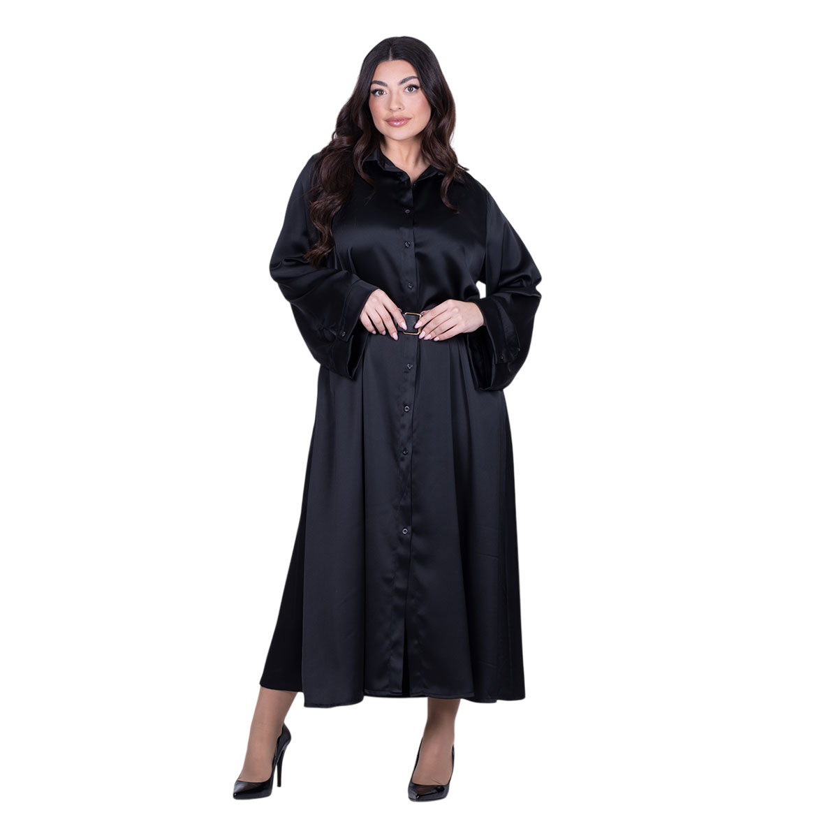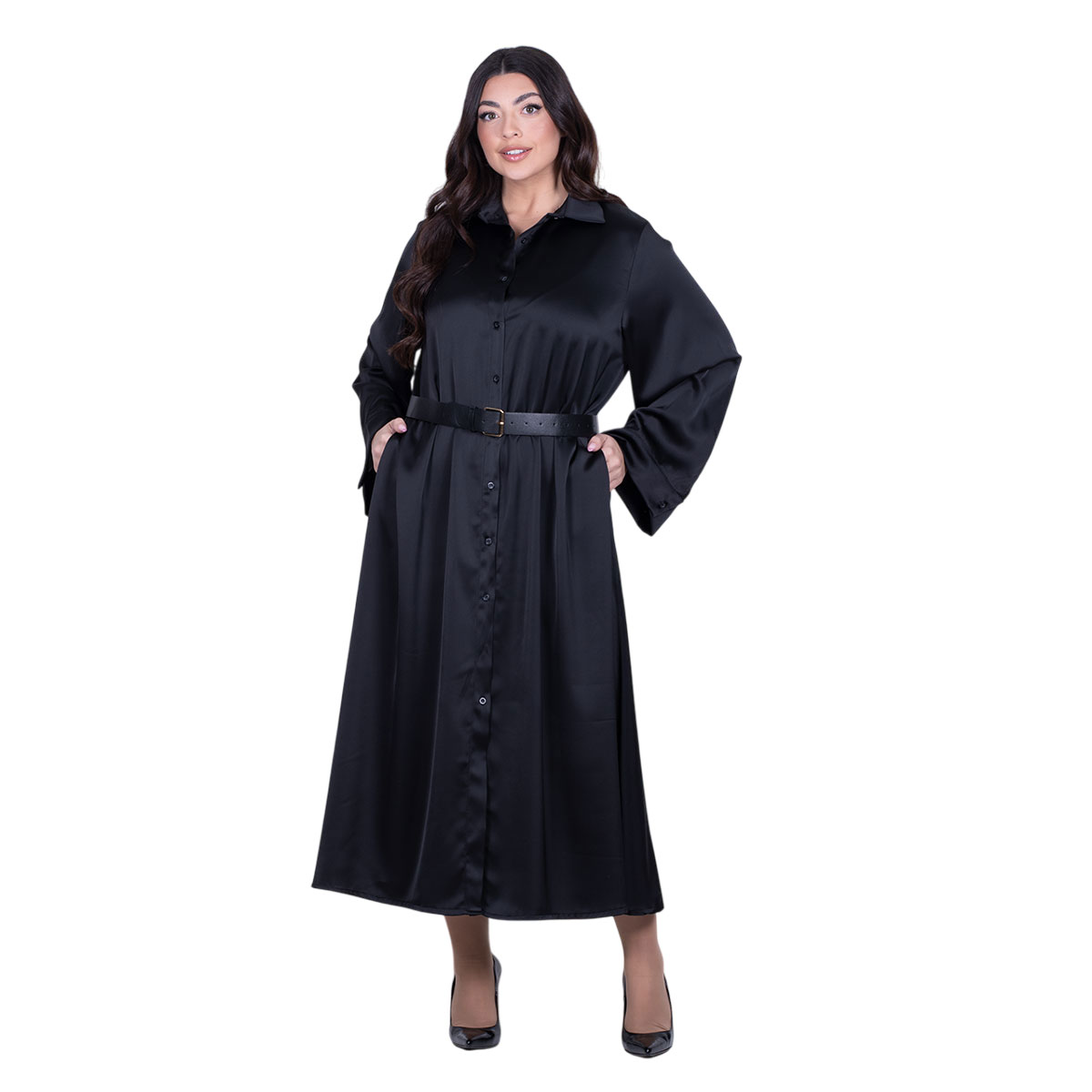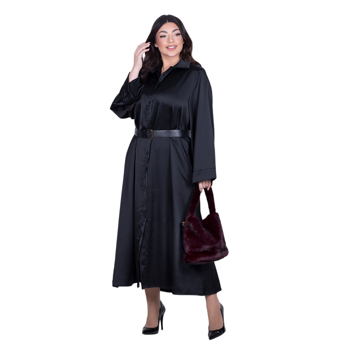 Fairyland Φόρεμα Μαύρο Γυναικείο Σατινέ Με Κουμπιά Μακρύ Άλφα Γραμμή All Day Free Size – FM-7275-BC