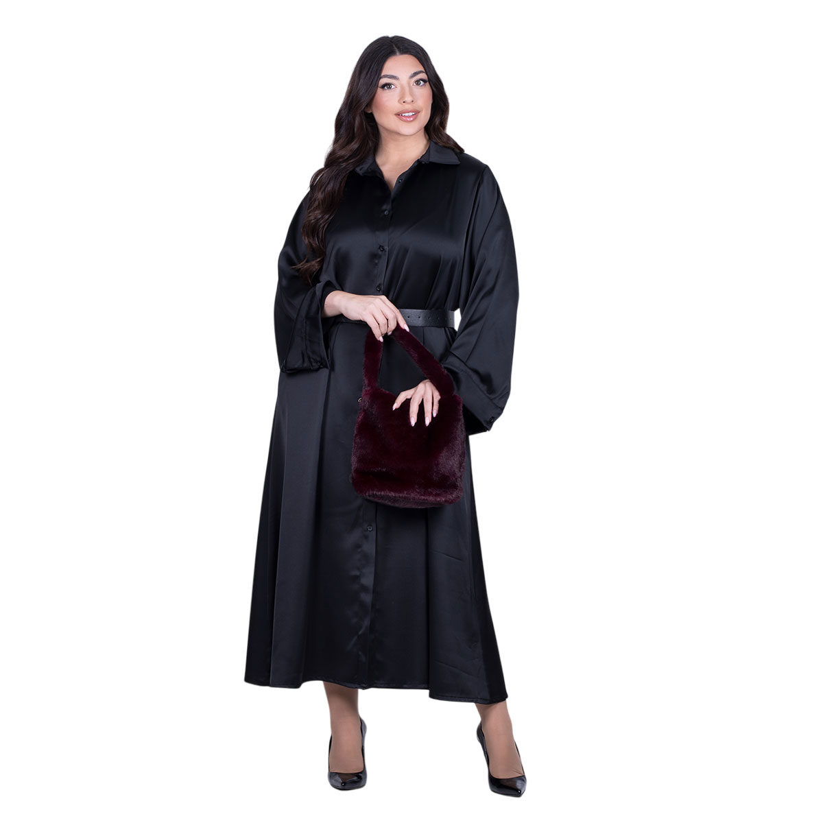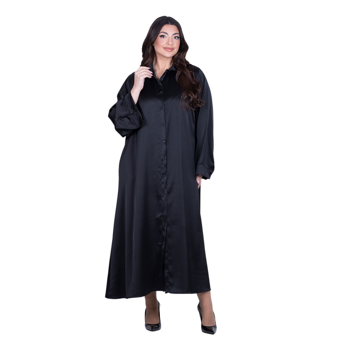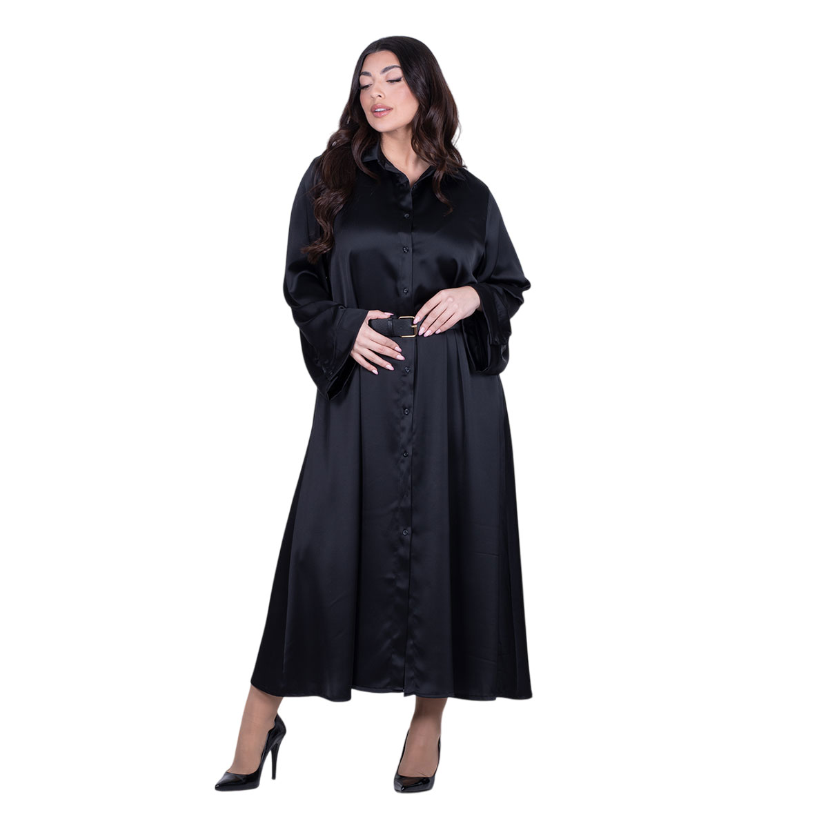 Fairyland Φόρεμα Μαύρο Γυναικείο Σατινέ Με Κουμπιά Μακρύ Άλφα Γραμμή All Day Free Size – FM-7275-BC