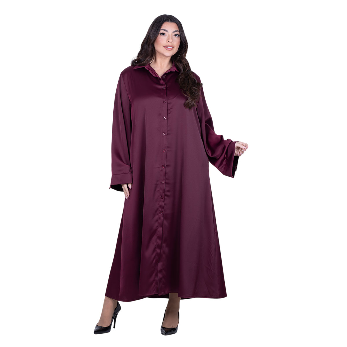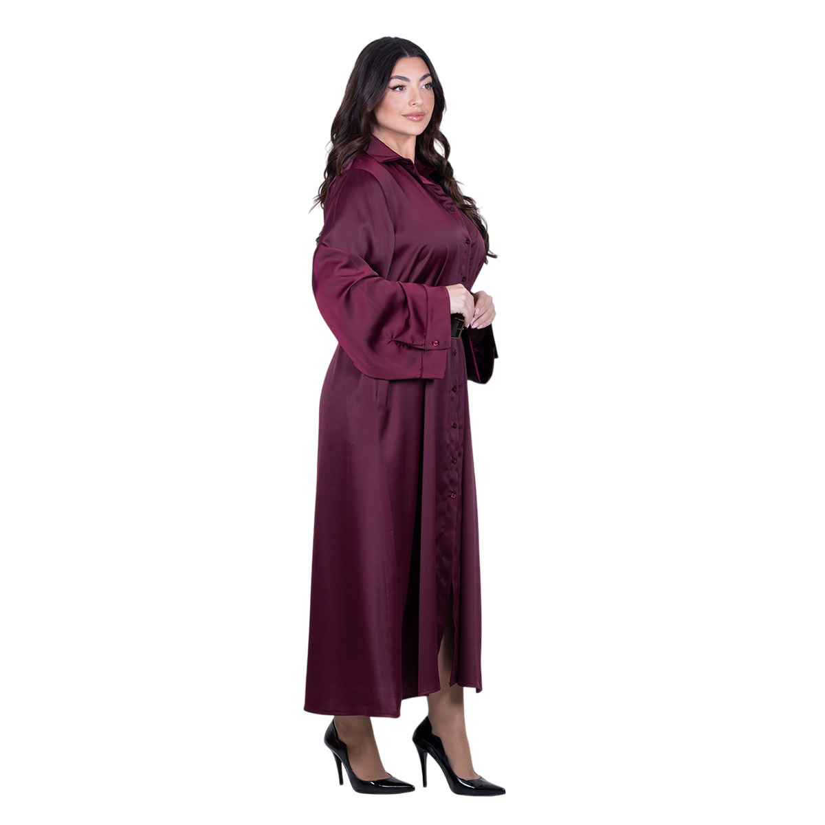 Fairyland Φόρεμα Μπορντό Γυναικείο Σατινέ Με Κουμπιά Μακρύ Άλφα Γραμμή All Day Free Size – FM-7275