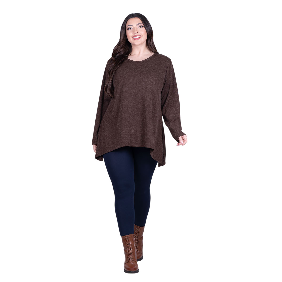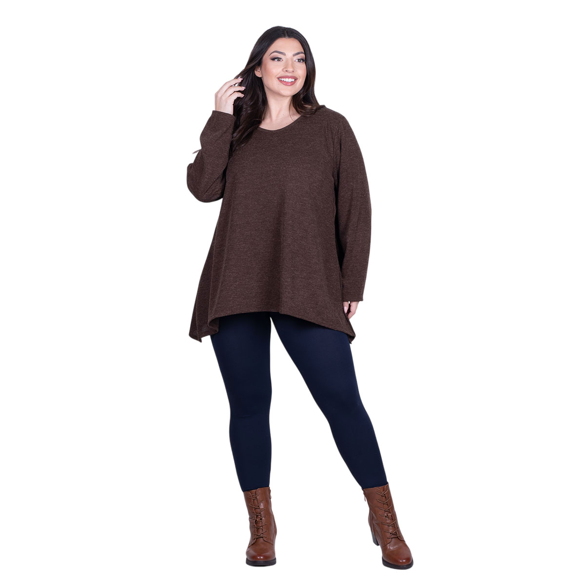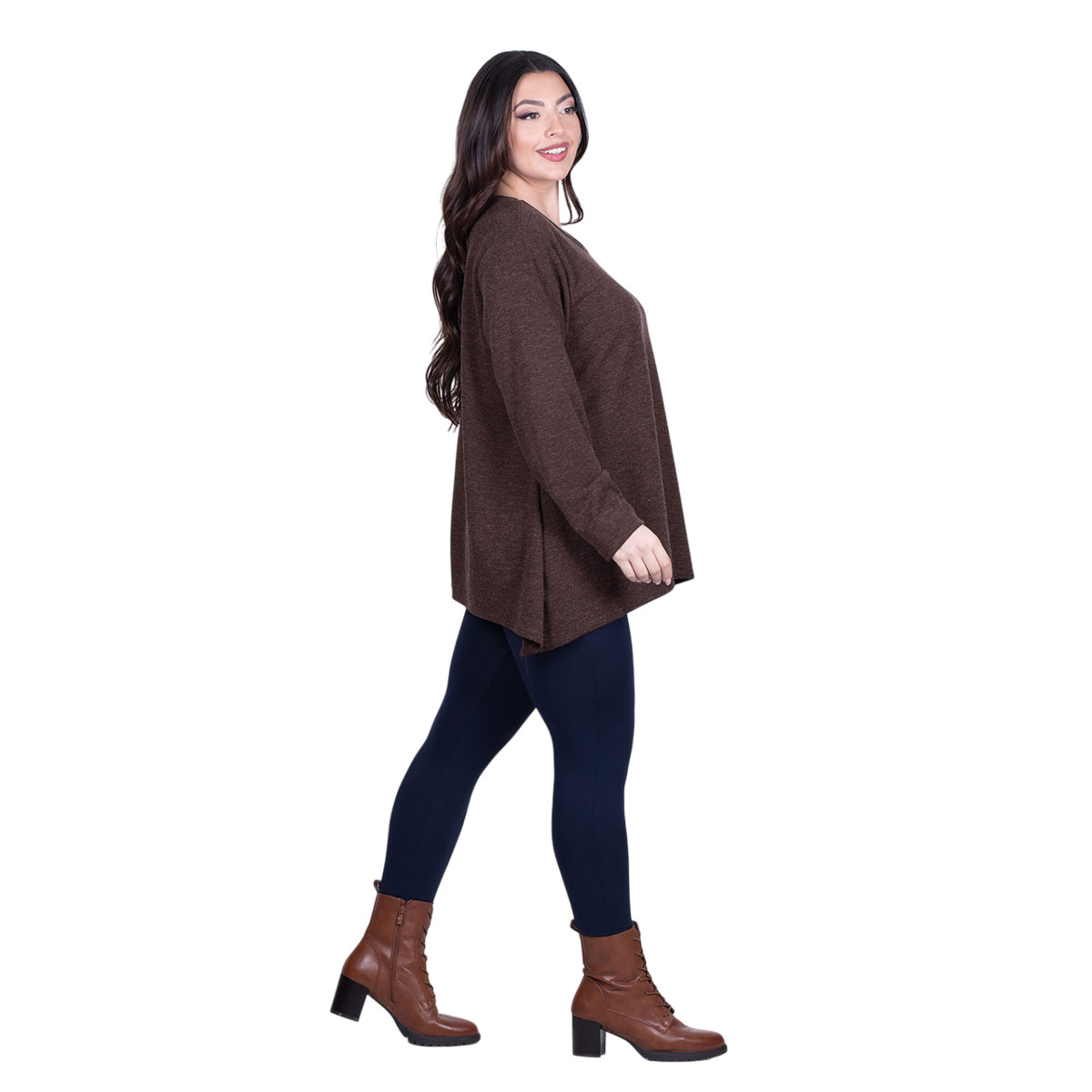 Fairyland Moschato, καθημερνή, μπλούζα σε καφέ χρώμα, γυναικεία, φαρδιά, λεπτή, με μικρή οβάλ λαιμόκοψη, εβαζέ, κλος, μακριά μανίκια και μικρή ασυμμετρία στα πλαϊνά της.