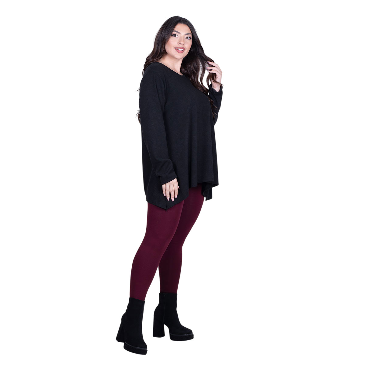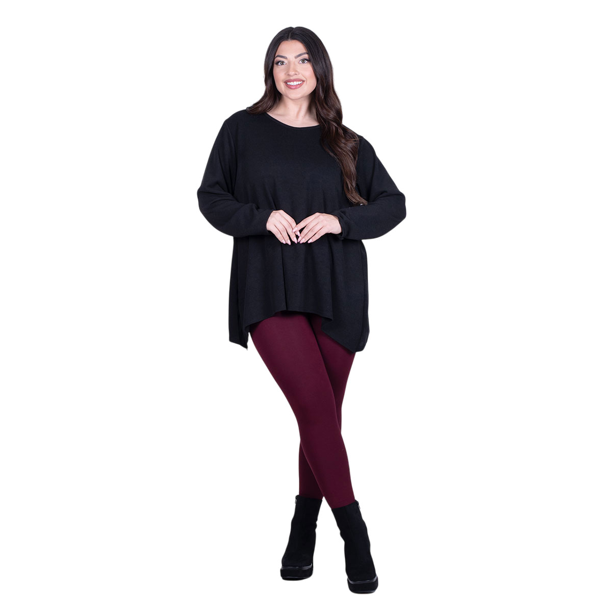 Fairyland Moschato, καθημερνή, μπλούζα σε μαύρο χρώμα, γυναικεία, φαρδιά, λεπτή, με μικρή οβάλ λαιμόκοψη, εβαζέ, κλος, μακριά μανίκια και μικρή ασυμμετρία στα πλαϊνά της.