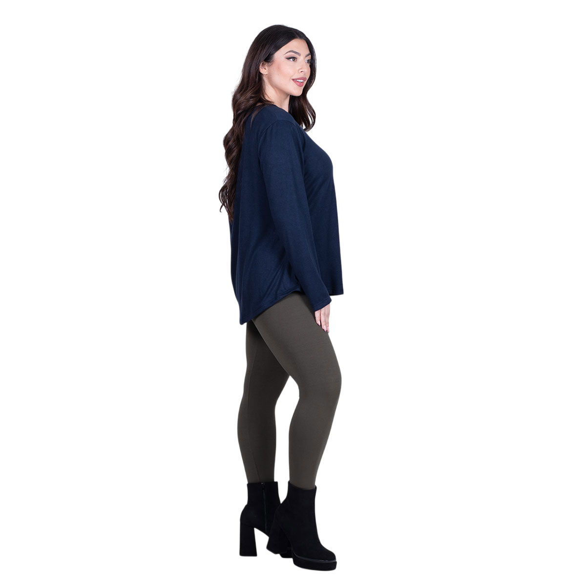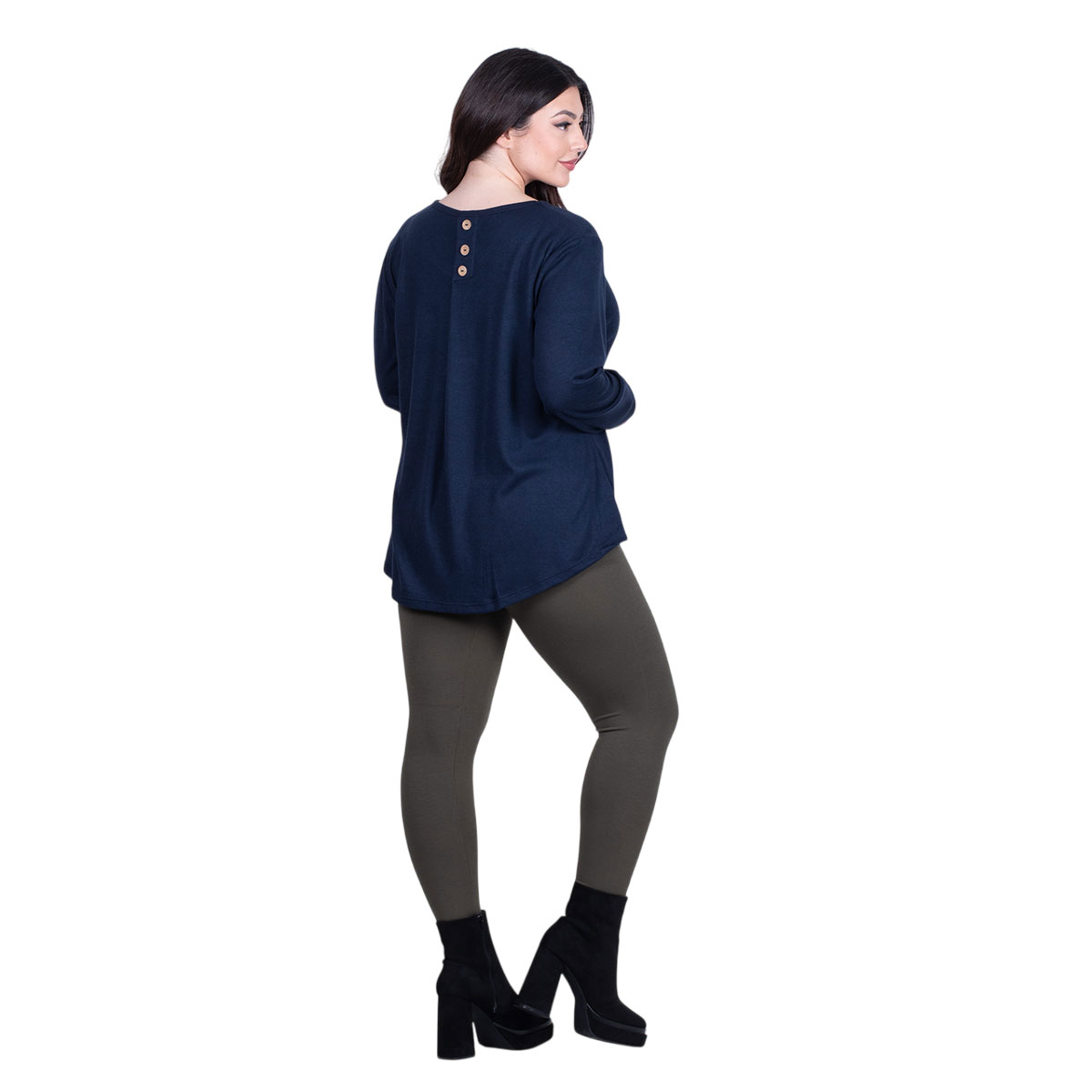Fairyland Moschato, καθημερνή, μπλούζα σε σκούρο μπλε χρώμα, γυναικεία, φαρδιά, λεπτή, με μικρή οβαλ λαιμόκοψη, εβαζέ, με λίγο κλος, μακριά μανίκια και μικρή ασυμμετρία στο πίσω μέρος της.