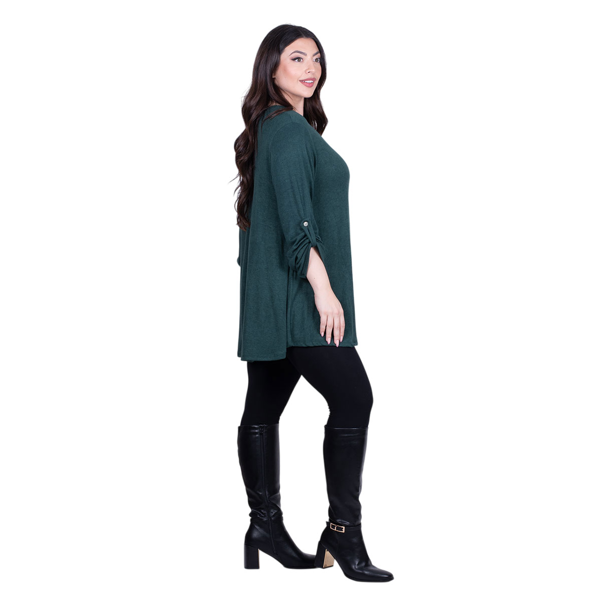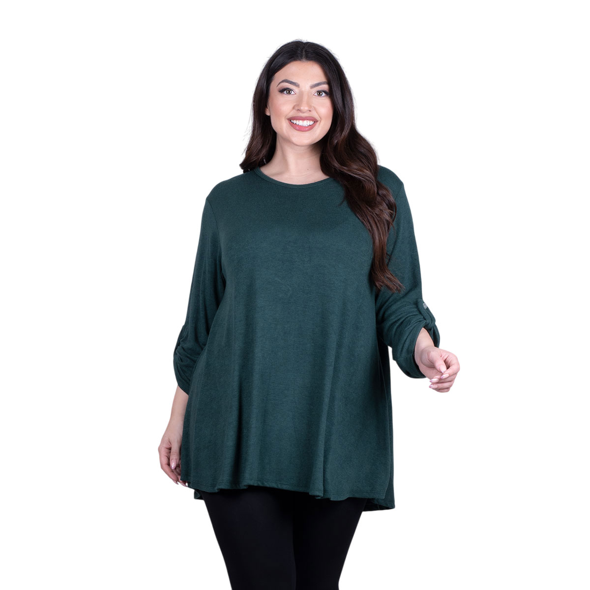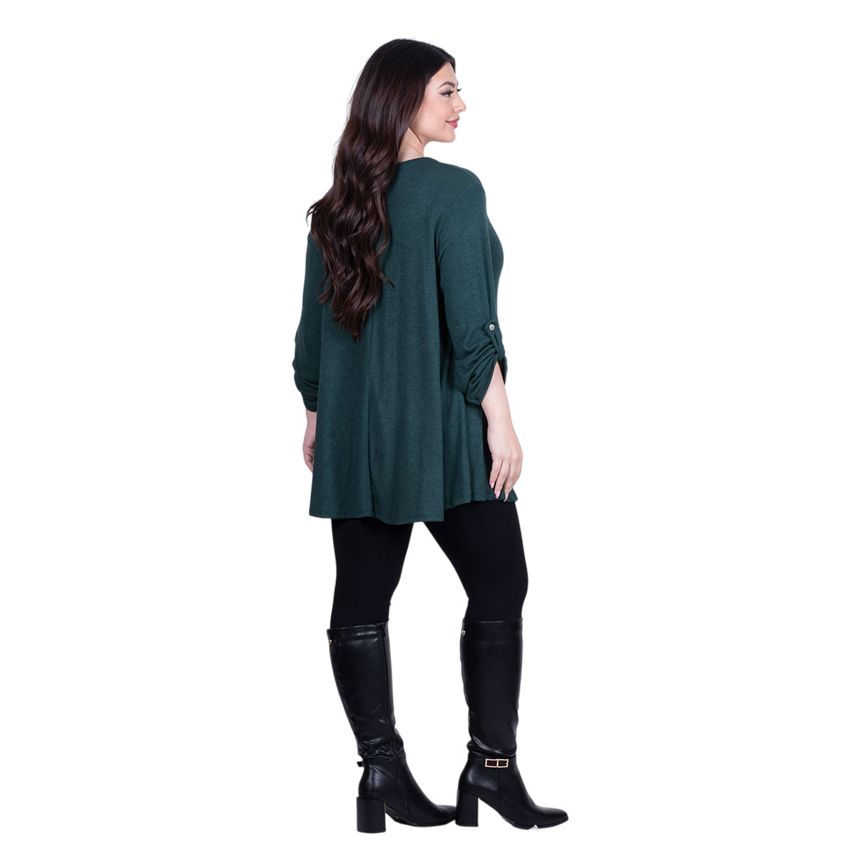 Fairyland Moschato, καθημερνή, μπλούζα πράσινη, γυναικεία, φαρδιά, λεπτή, με μικρή οβαλ λαιμόκοψη, κλος, μακριά αναδιπλώμενα μανίκια με κουμπί και μικρή ασυμμετρία στο πίσω μέρος της.