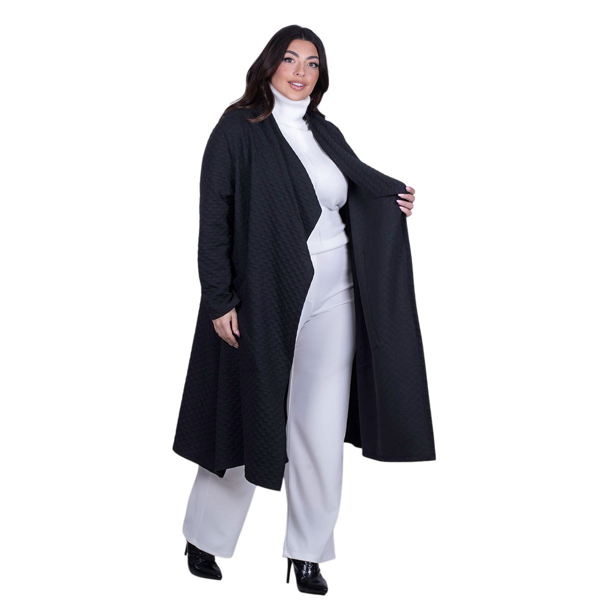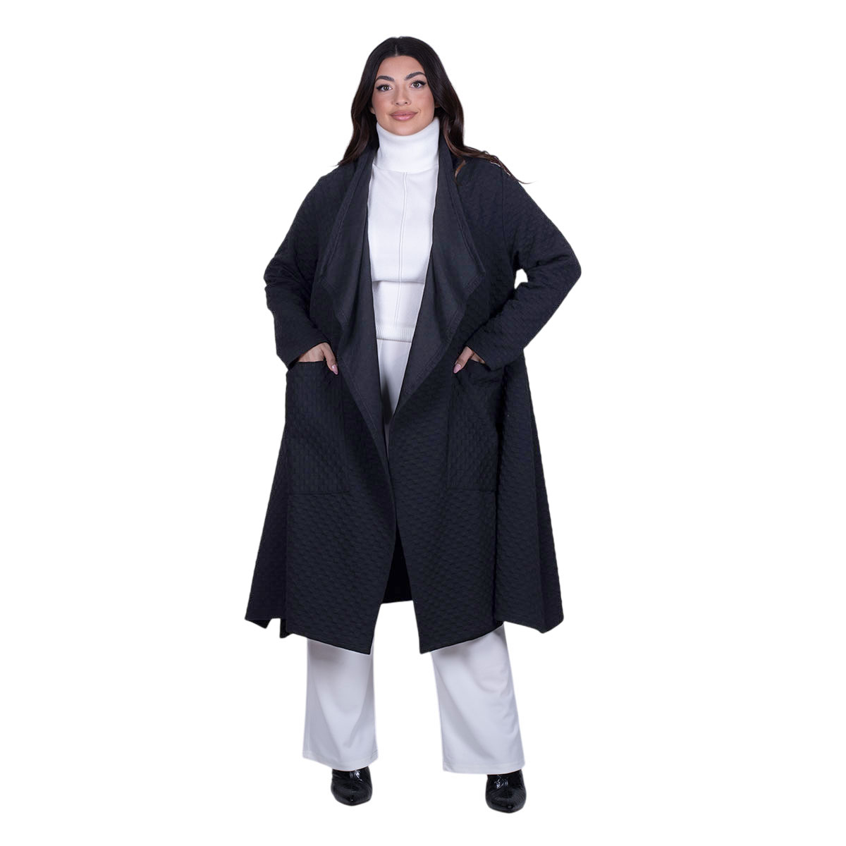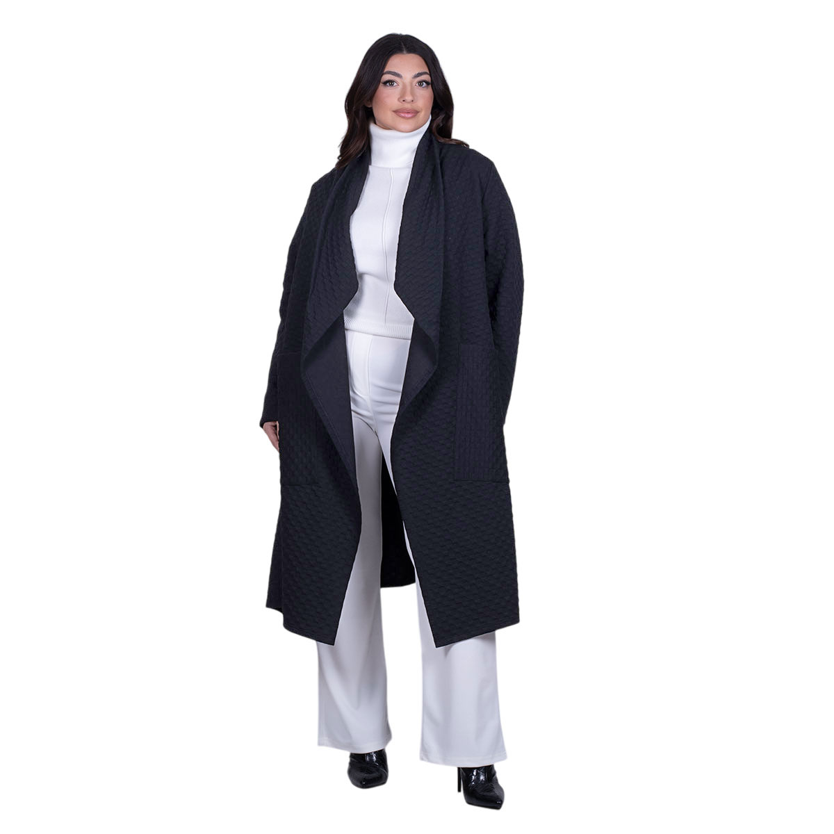 Fairyland Moschato Παλτό Μαύρο Γυναικείο Ανάγλυφο Σχέδιο Με Τσέπες Casual All Day Free Size – FM-76208-BC
