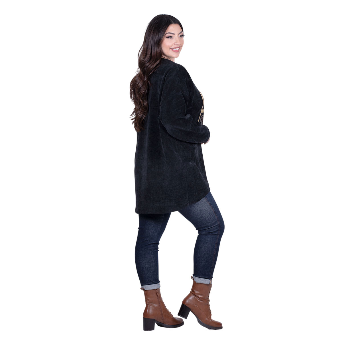 Platinum Πουκάμισο Μαύρο Γυναικείο Μακρυμάνικο Με Πιέτες Ασύμμετρο All Day Free Size – IT-1068-ΒL