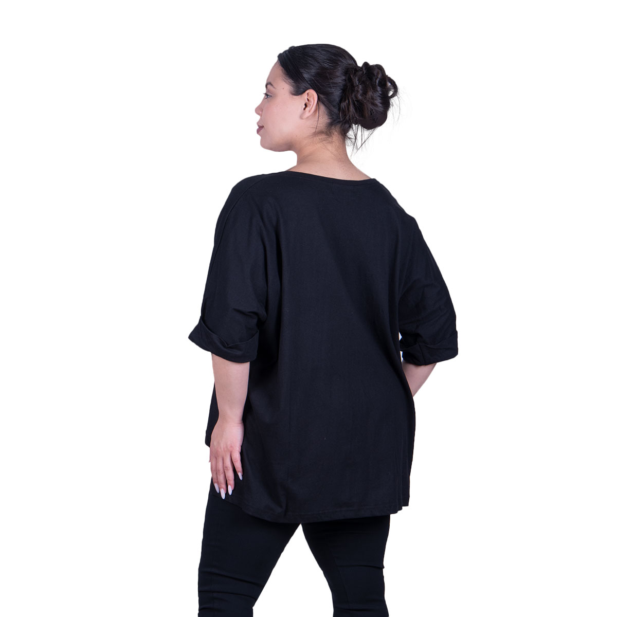 Fairyland Μπλούζα Μαύρη Γυναικεία Κοντομάνικη Ασύμμετρη Φαρδιά All Day Free Size – FM-8546-BC