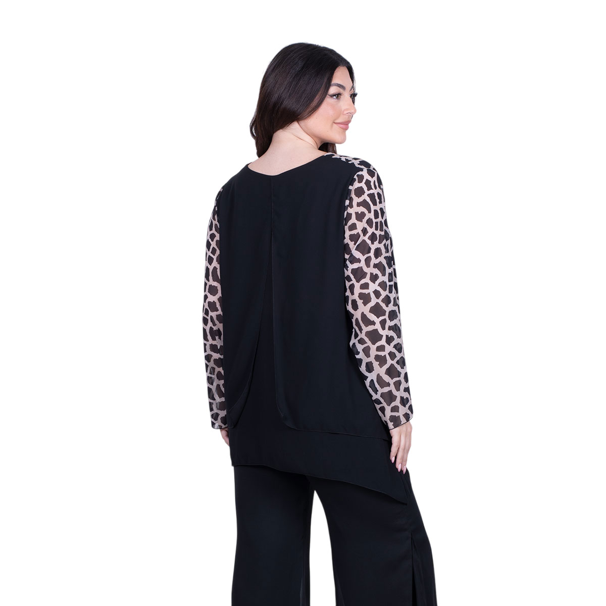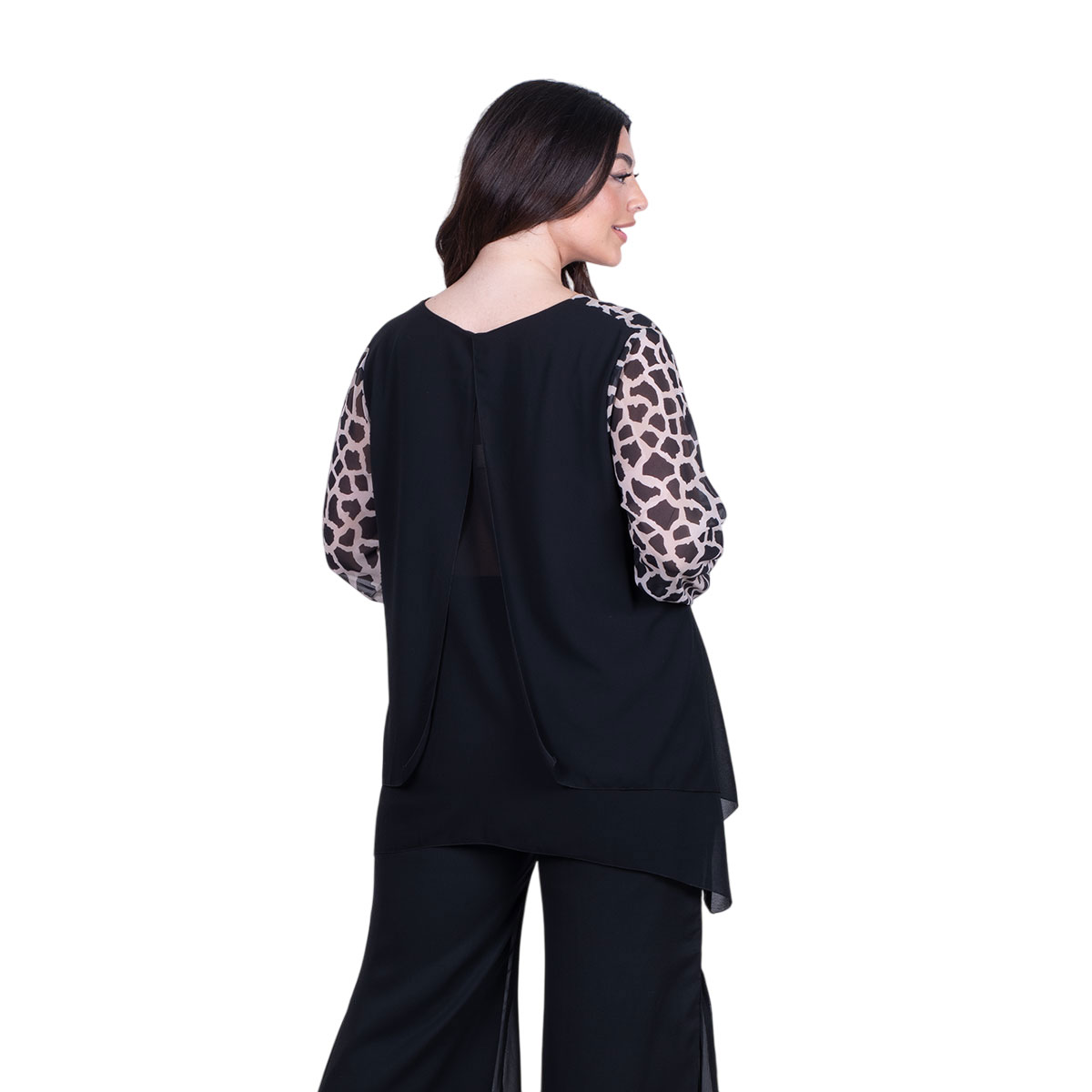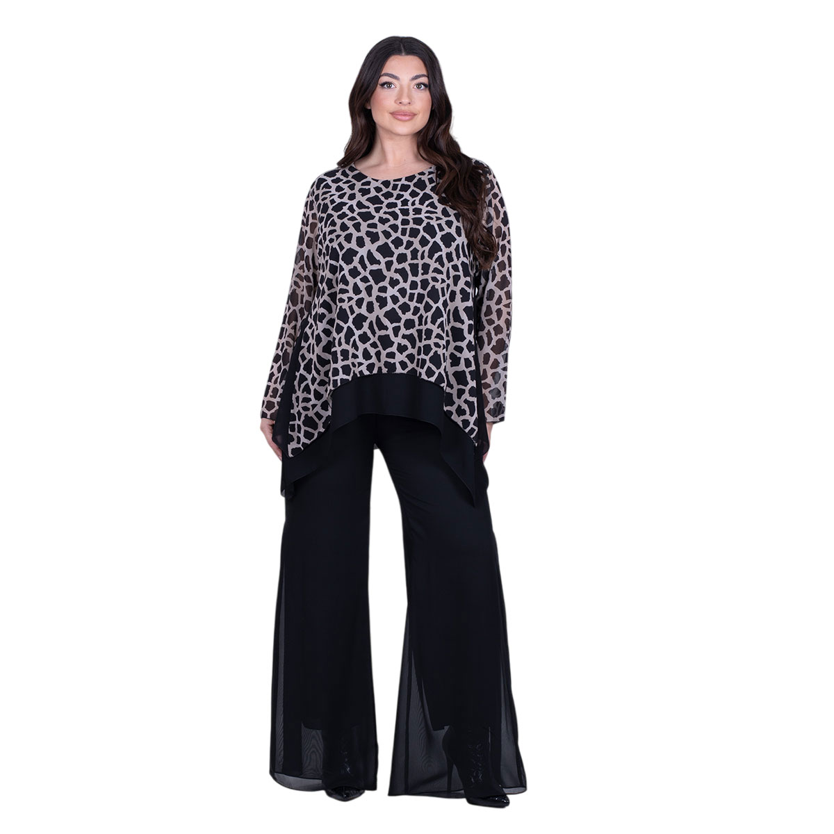 Fairyland Μπλούζα Μαύρη Με Εκρού Σχέδια Γυναικεία Με Μύτες All Day Free Size – FM-8495-BC