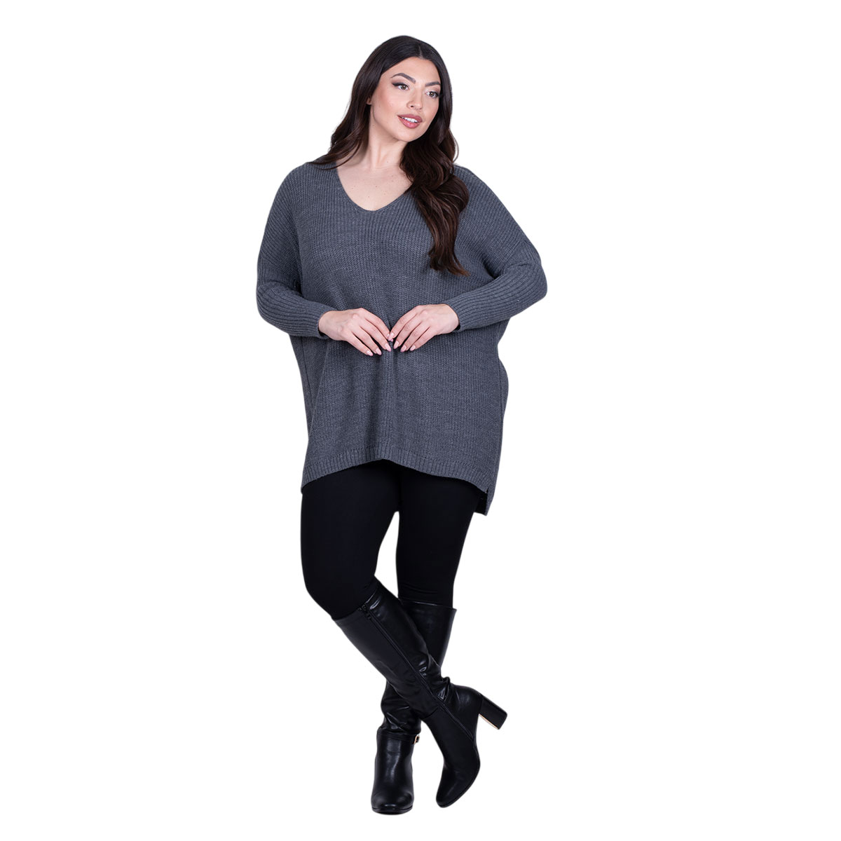 Fairyland Πουλόβερ Γκρι Γυναικείο Πλεκτό Ασύμμετρο Casual Με Nτεκολτέ All Day Free Size -FM-886-G
