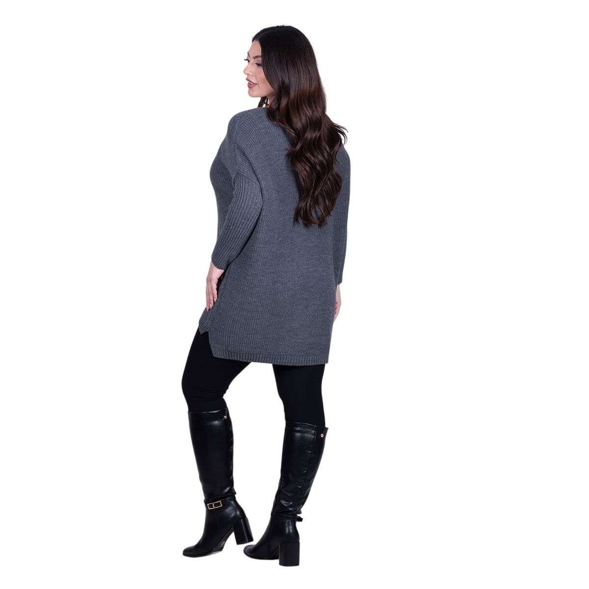 Fairyland Moschato, νεανικό, πουλόβερ γκρι, γυναικείο, μακρύ, ασύμμετρο, casual, με V ντεκολτέ. Έχει χαμηλή μανικοκόλληση και μανίκι 3/4, πλεκτό ως κάλτσα. Απλό, ζεστό και στιλάτο και φιλικό με το σώμα σας. !!!