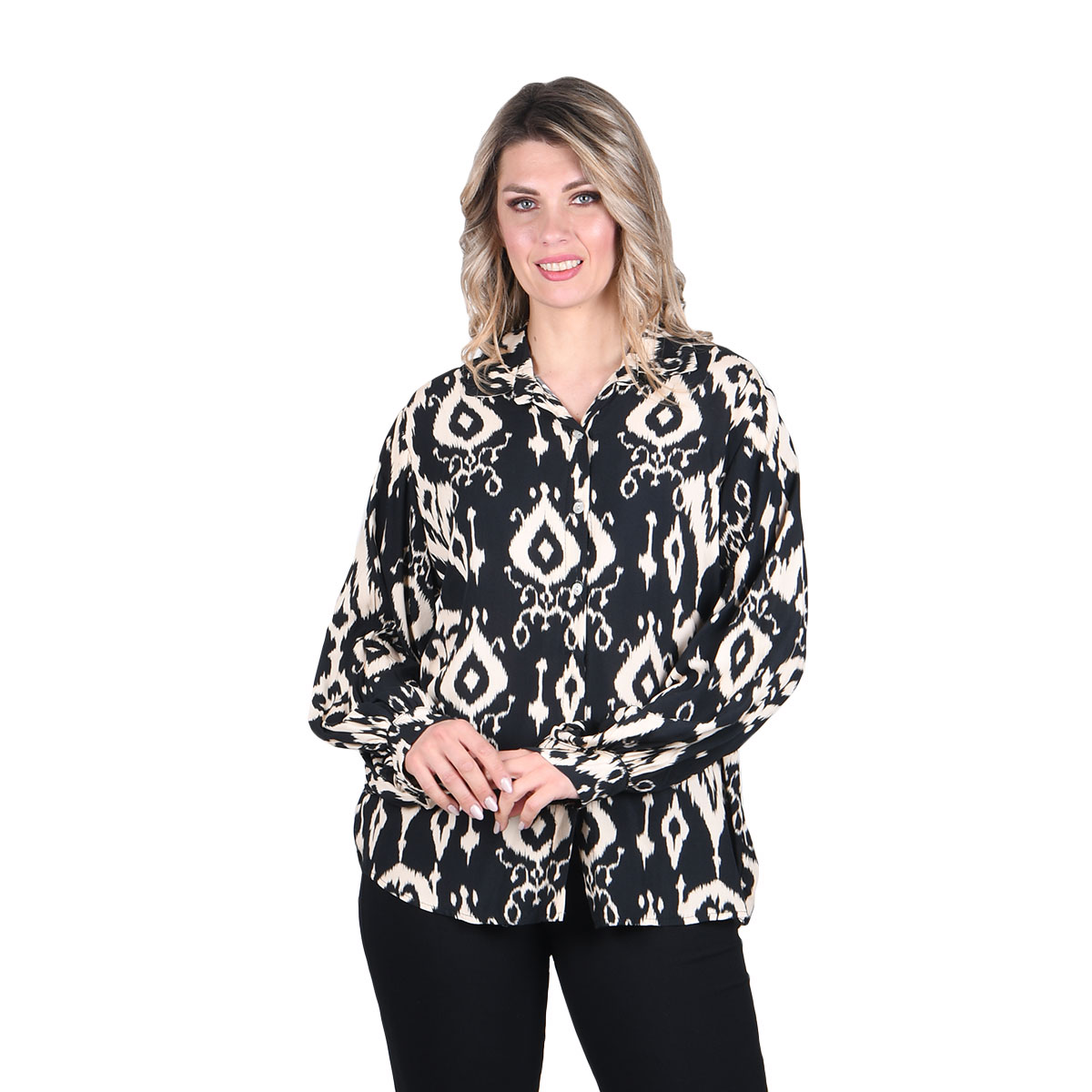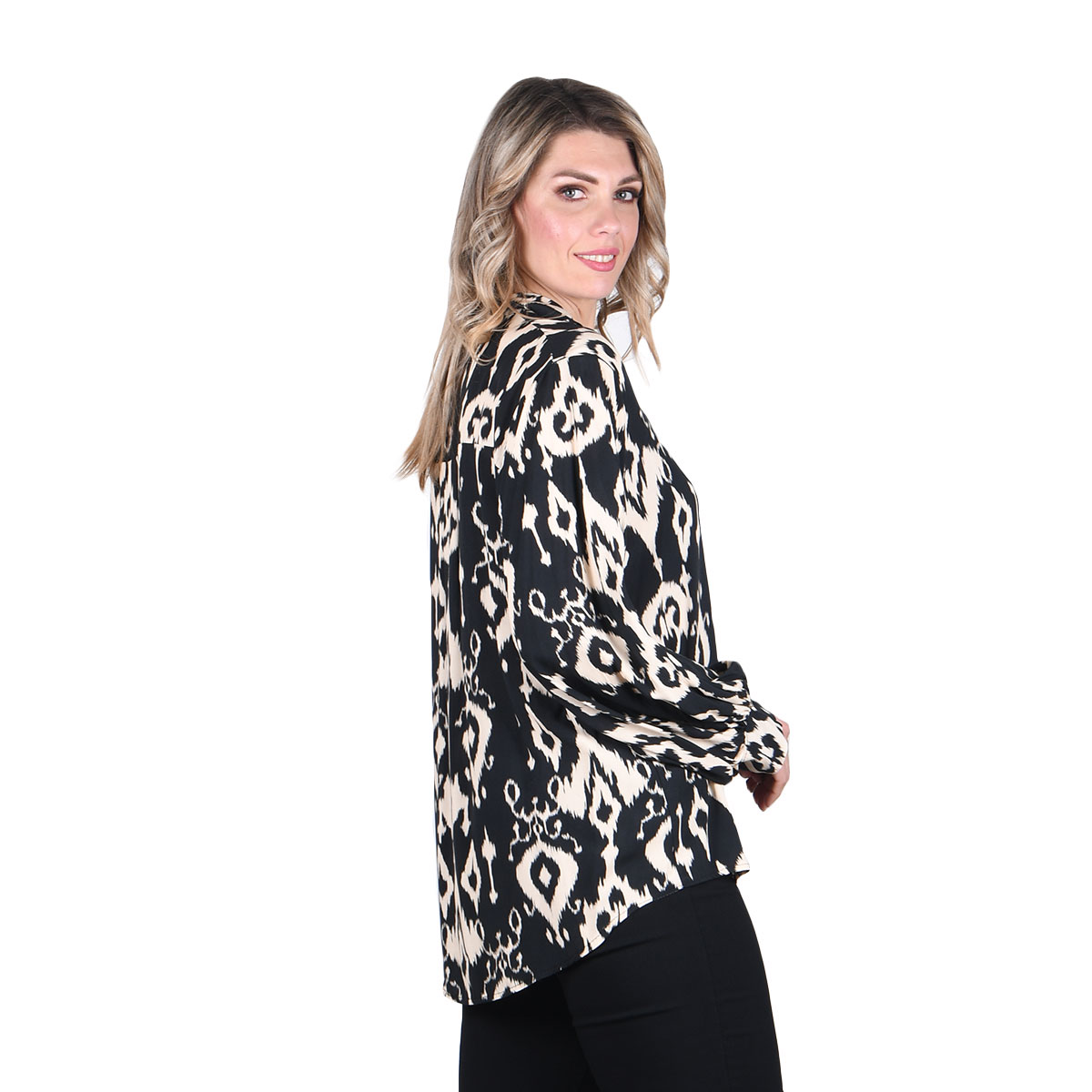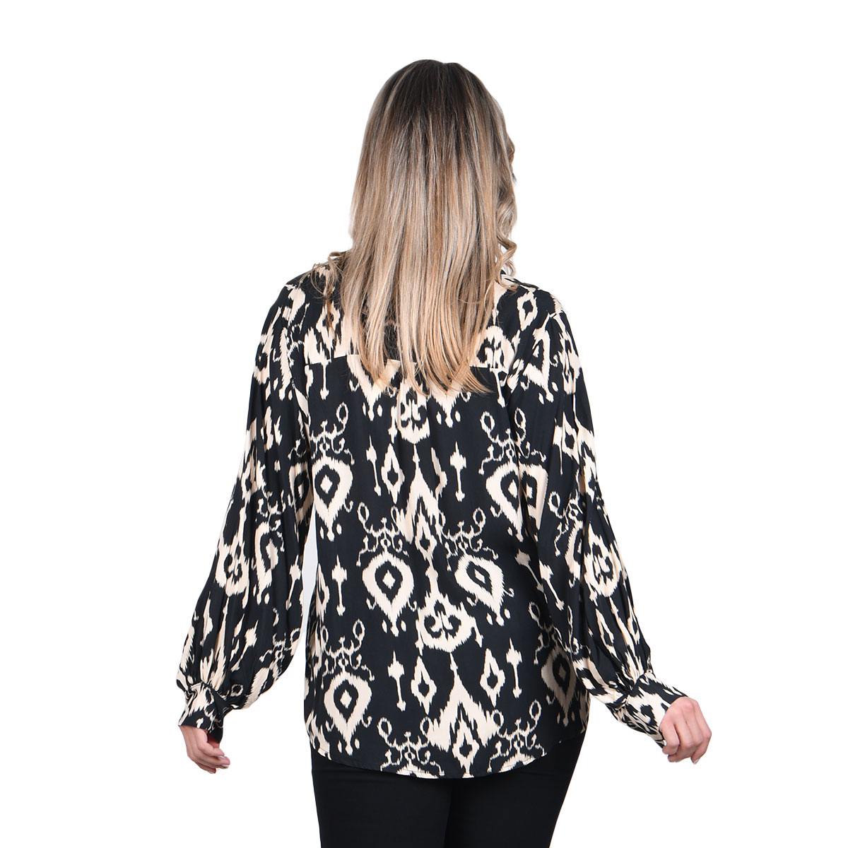Fullah Sugah Πουκαμίσα Μαύρη Με Εκρού Boho Σχέδια Γυναικεία Μακρυμάνικη All Day – FS-32300002