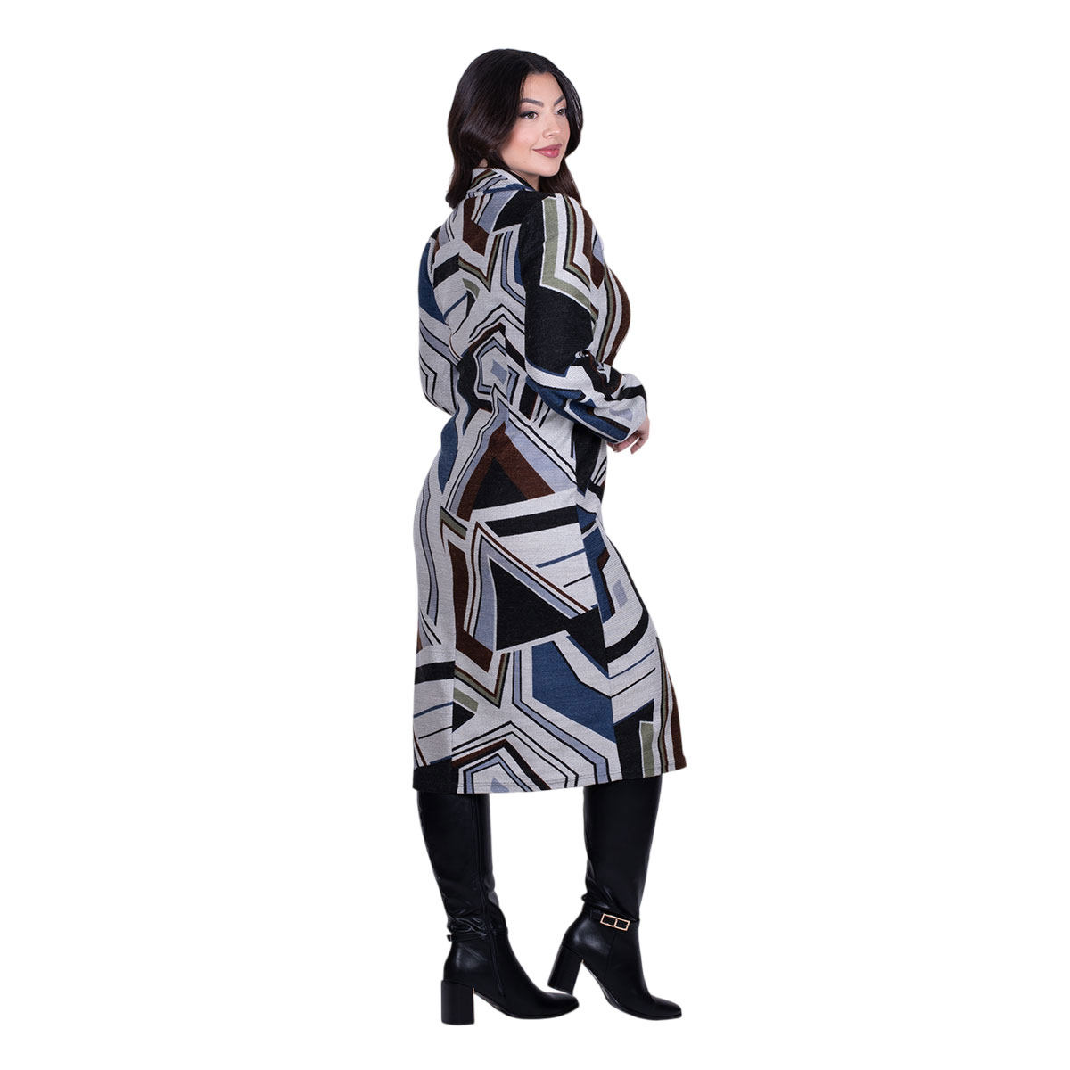 Gomore Φόρεμα Γκρι Με Πολύχρωμα Γεωμετρικά Σχέδια Γυναικείο Μidi Σε Ίσια Γραμμή – GM-56769-G