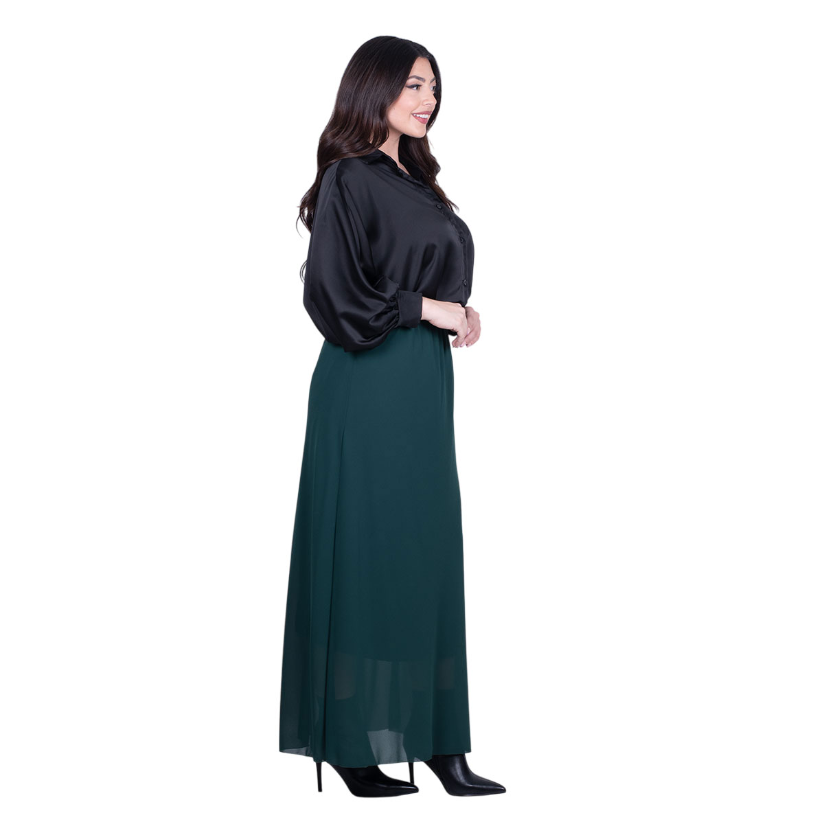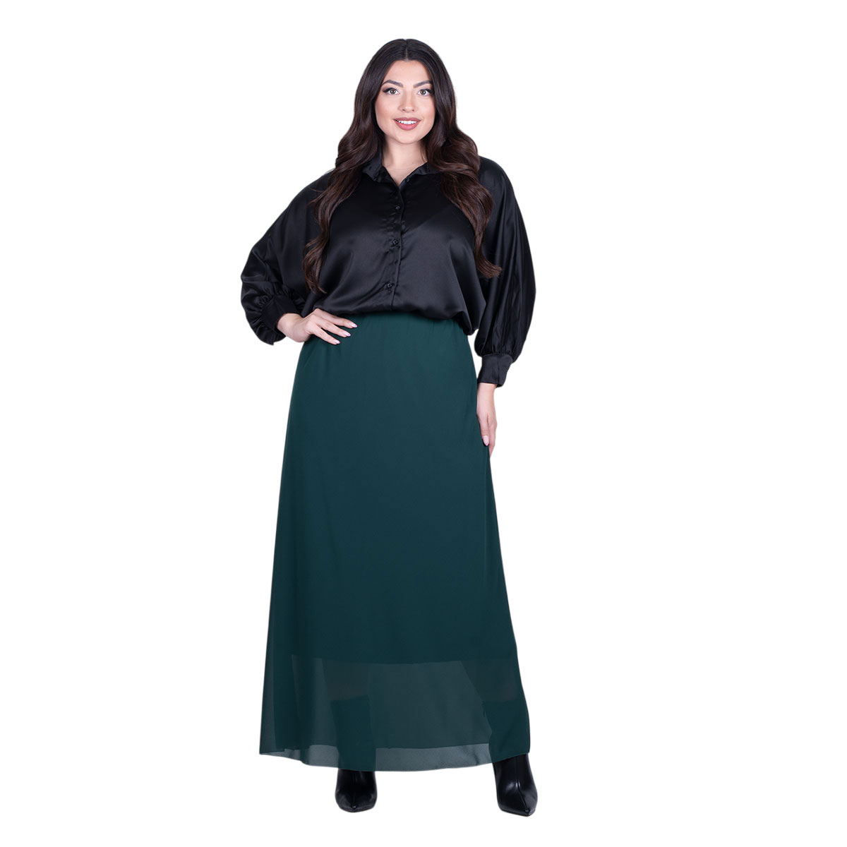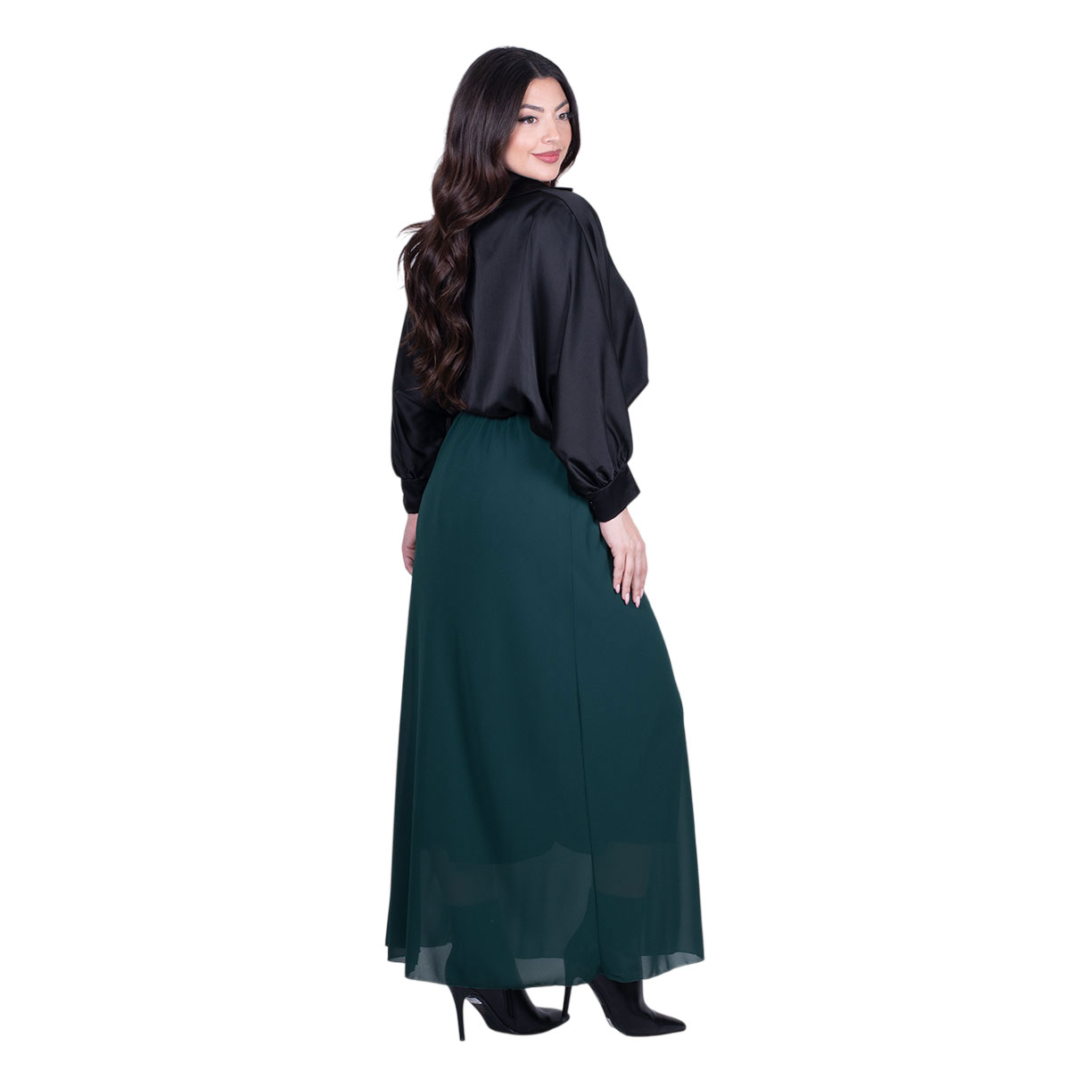 Gomore Φούστα Πράσινη Ζορζέτα Γυναικεία Μακριά Βραδινή Εβαζέ – 24730-GR