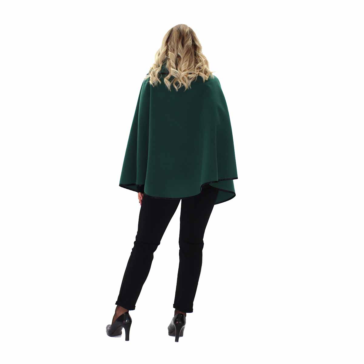 Gomore, υπέροχη, πράσινη κάπα, γυναικεία, νεανική, χειμωνιάτικη, ασύμμετρη, κλείνει με κουμπί και έχει περιμετρικά, μαύρη τρέσα. Εντυπωσιακή!!!