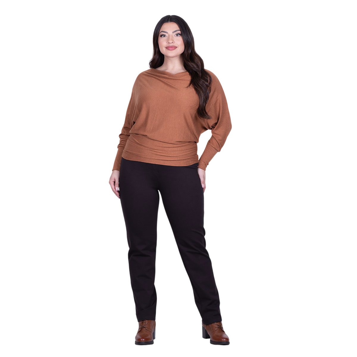 Gomore, καθημερινό, παντελόνι καφέ, γυναικείο, ελαστικό, στενό, χειμωνιάτικο, casual, υψηλόμεσο, με λάστιχο στη μέση, θυλάκια και δύο εξωτερικές τσέπες στο πίσω μέρος του.