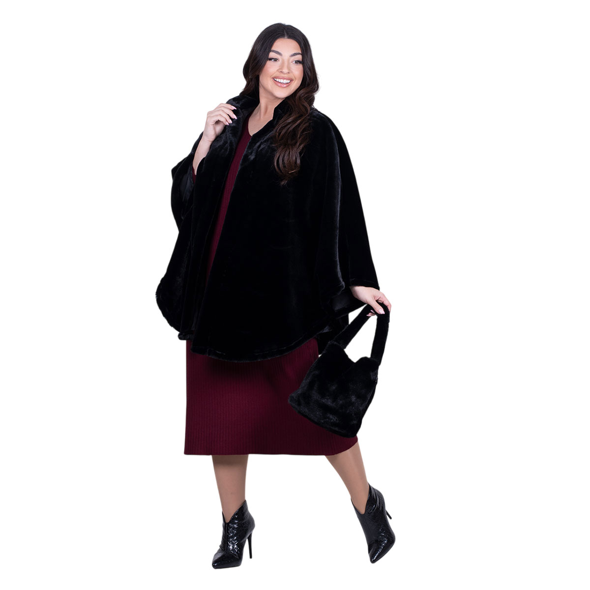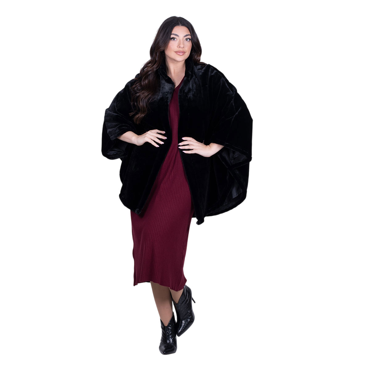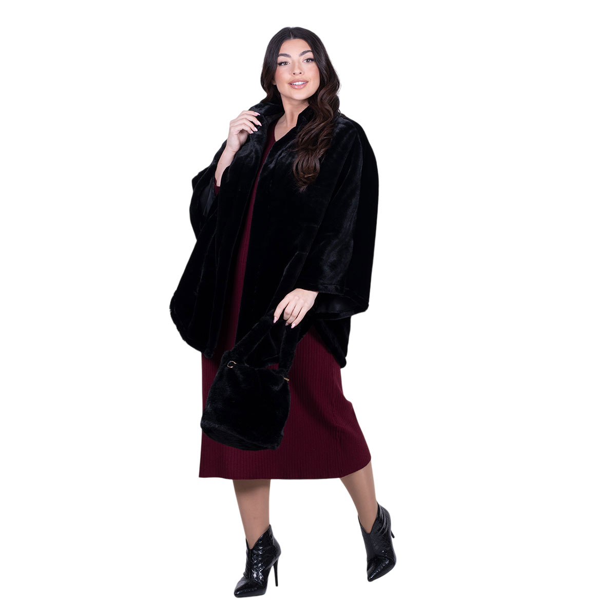 Gomore, πανέμορφη, κάπα μαύρη, γούνινη, οικολογική, γυναικεία, χειμωνιάτικη υπέροχη, ζεστή, με μανίκια. Εσωτερικά έχει φόδρα. Εντυπωσιακή!!! Θα δώσει στιλ στις καθημερινές μα και στις βραδυνές και επίσημες εμφανίσεις σας !!!