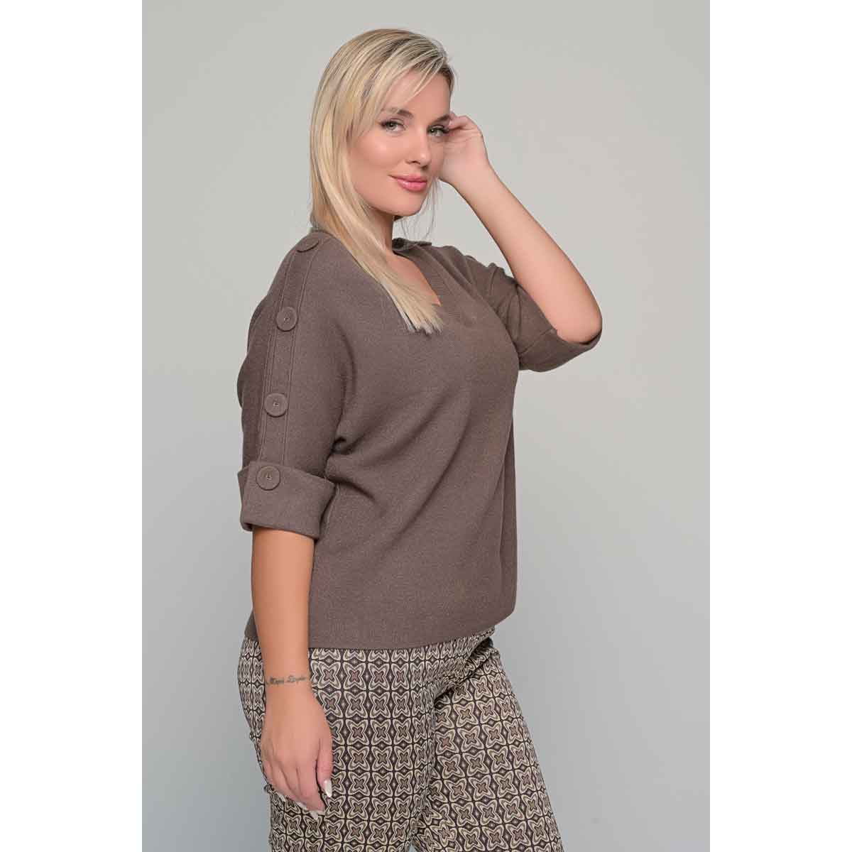 Gomore Μπλούζα Καφέ Γυναικεία Πλεκτή Με Ντεκολτέ All Day Free Size – 56231