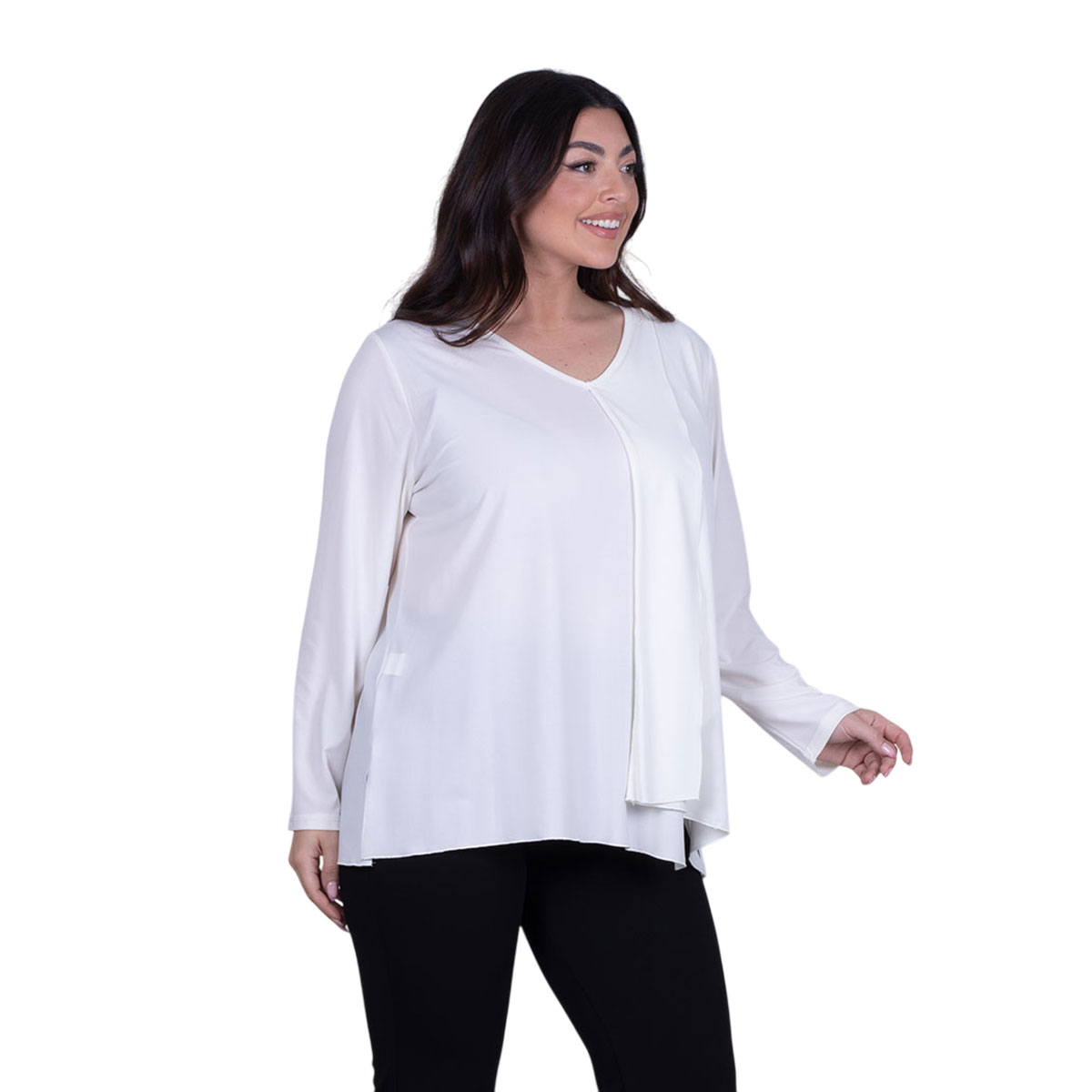 Gomore, εντυπωσιακή, μπλούζα, λευκή, γυναικεία, μακρυμάνικη, από λεπτό ύφασμα, καθημερινή, με μικρή ασυμμετρία, ντεκολτέ και σχέδιο κουφόπιετα. Φοριέται κατά τη διάρκεια όλης της ημέρας, μα και σε πιο ιδιαίτερες εμφανίσεις, με τα κατάλληλα αξεσουάρ και παπούτσια !!!