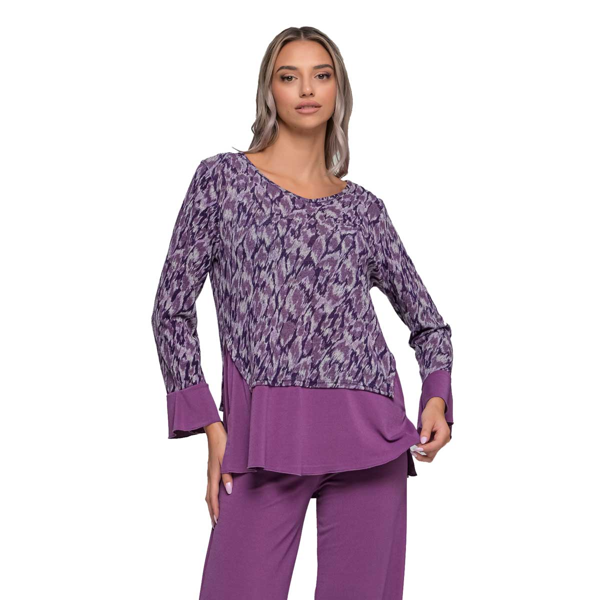 Gomore Μπλούζα Μωβ Με Εμπριμέ Σχέδια Γυναικεία Ανοιξιάτικη Άνετη Γραμμή All Day – 24966-PE