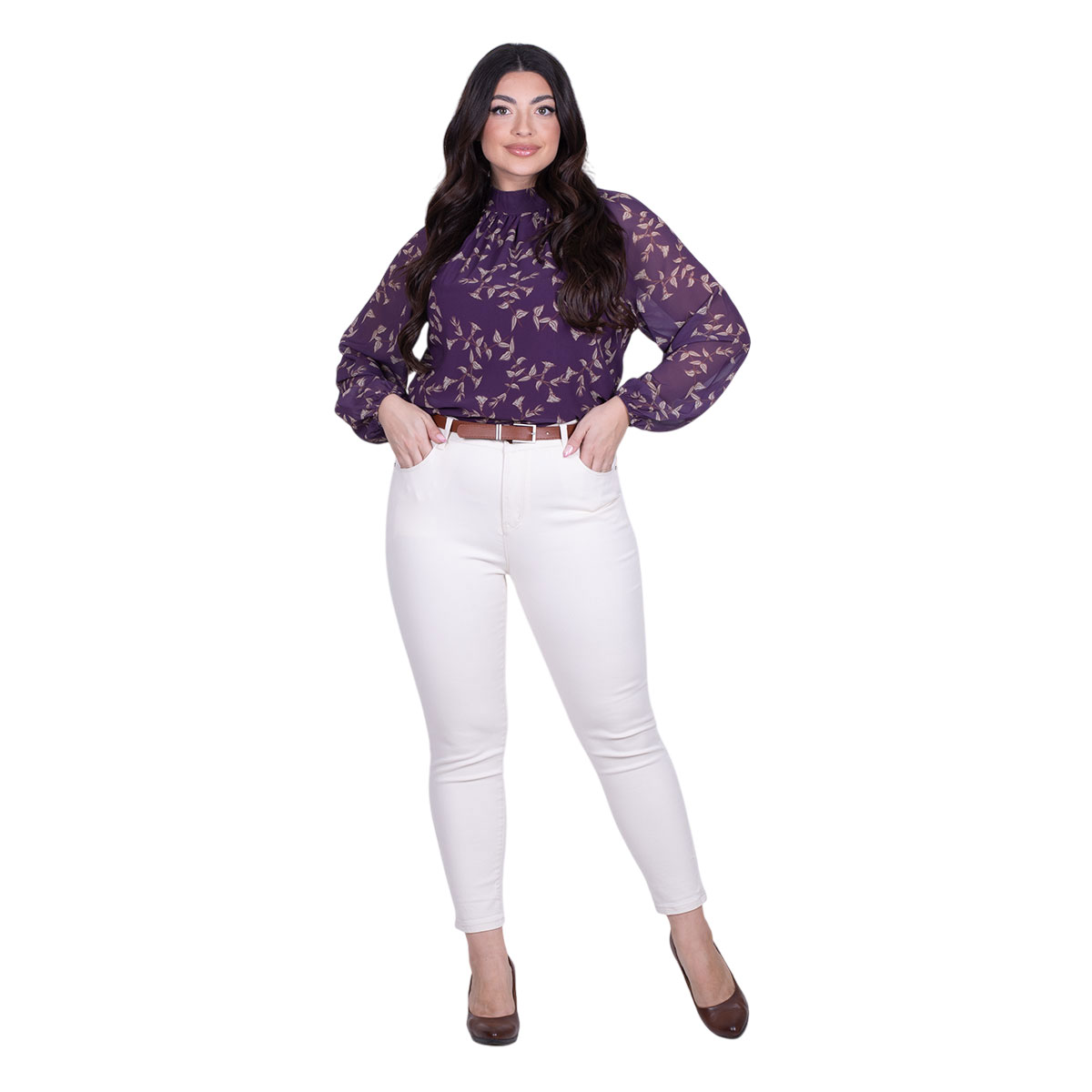 Gomore Παντελόνι Εκρού Γυναικείο Jean Στενό Ελαστικό Casual All Day – GM-51577-G