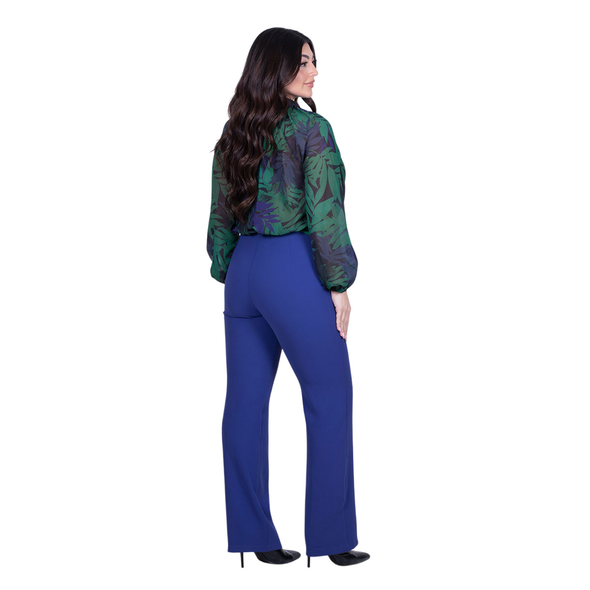 Gomore, εντυπωσιακό, παντελόνι μωβ, γυναικείο, χυτό, κρεπ, κλασικό, ελαστικό, με ψηλή μέση και χωρίς τσέπες. Κλείνει με εσωτερικό φερμουάρ στο μπροστινό του μέρος.