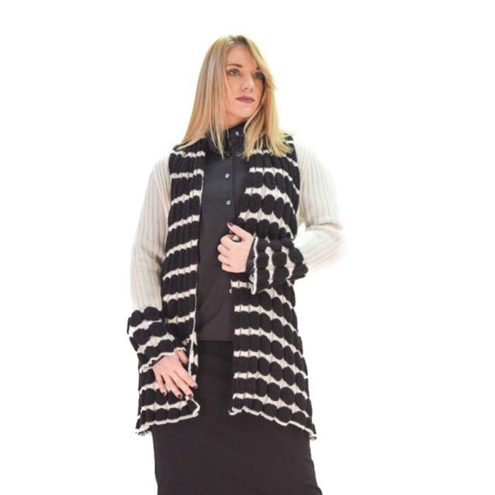 Fairyland Ζακέτα Ασπρόμαυρη Γυναικεία Χειμερινή Πλεκτή Ασύμμετρη All Day Free Size – fm-4290-z