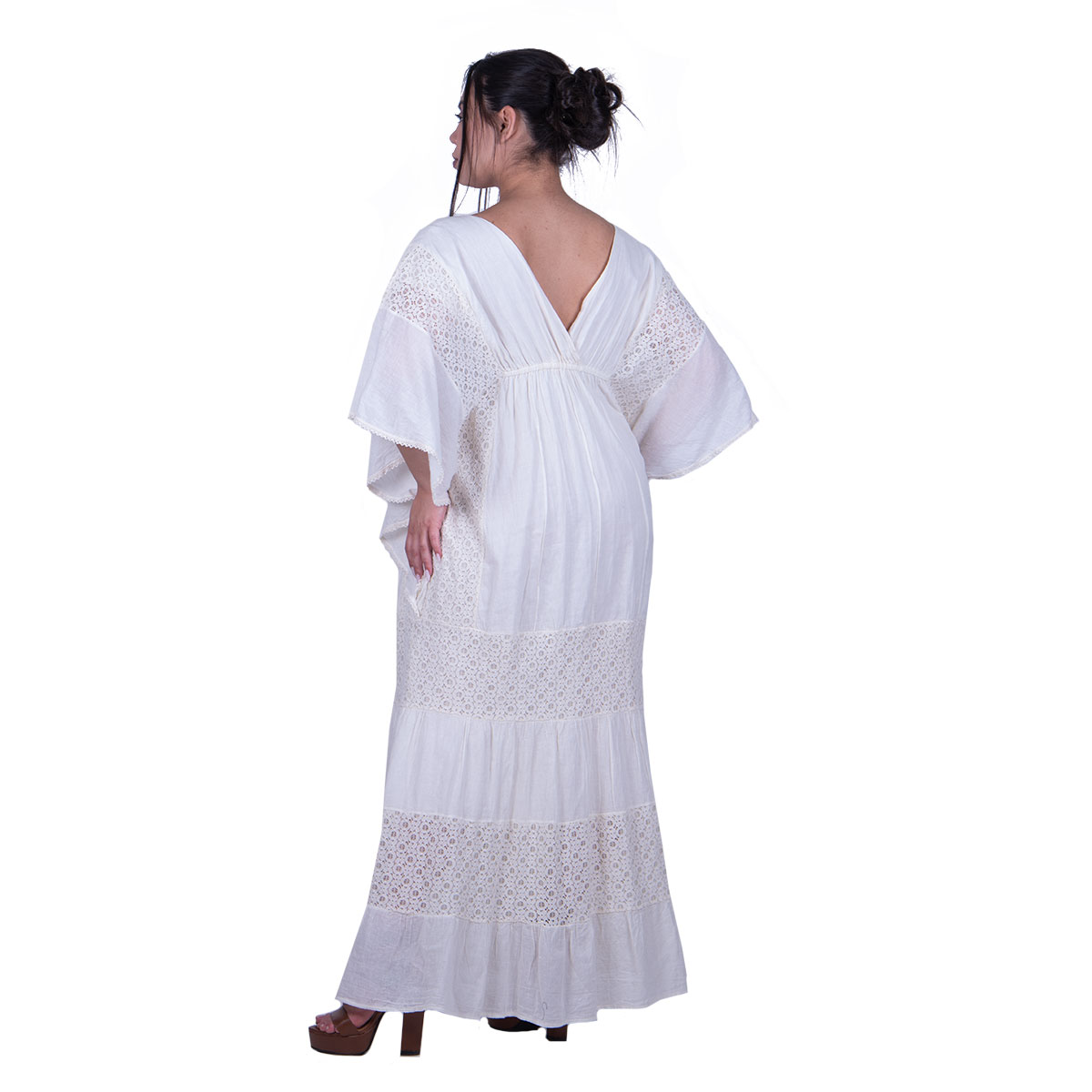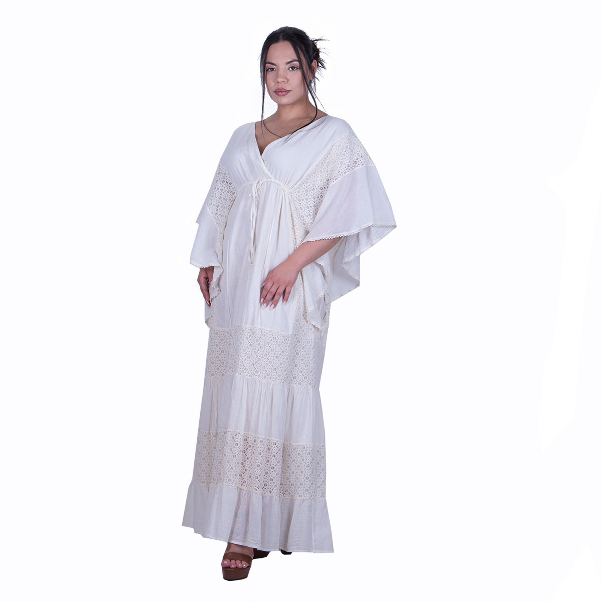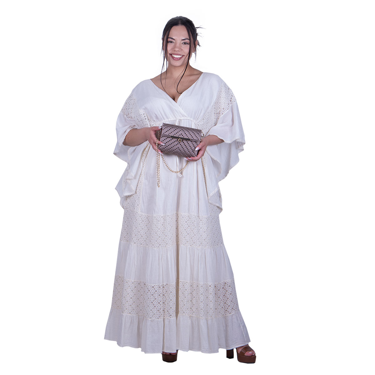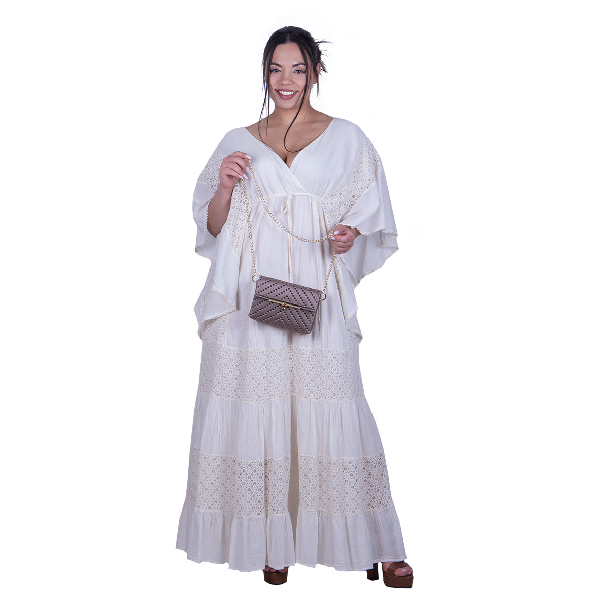 Platinum Φόρεμα Eκρού Γυναικείο Μaxi Vintage Με Ντεκολτέ & Δαντέλα Free Size – SAR-106-EK