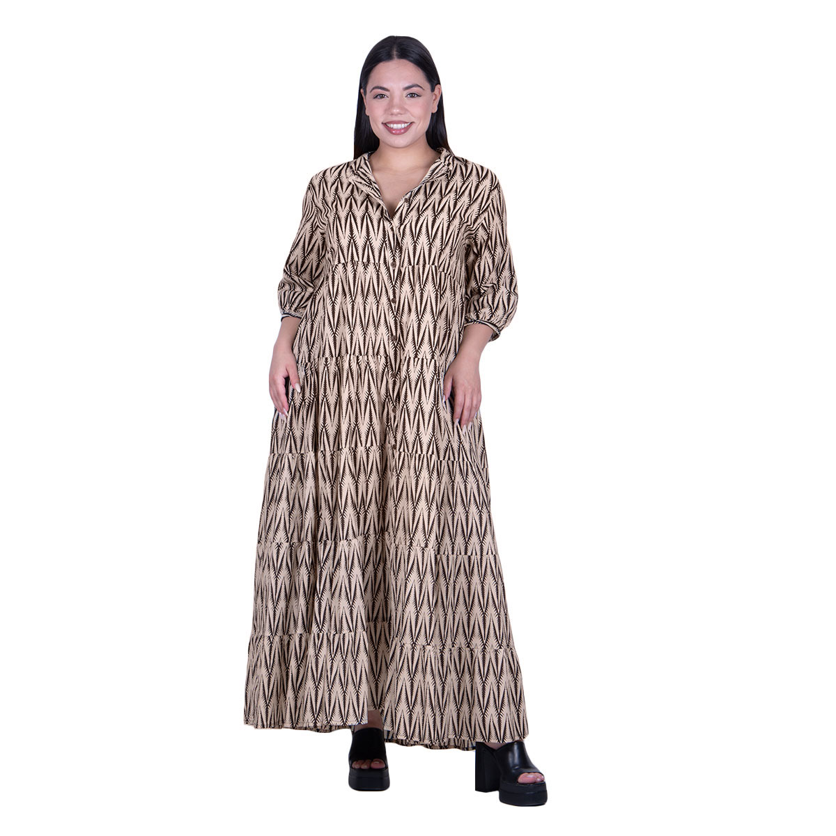 Platinum Φόρεμα Εκρού Με Μαύρο Γυναικείο Maxi Κλος Με Κουμπιά Τρουακάρ Free Size – 72555-72