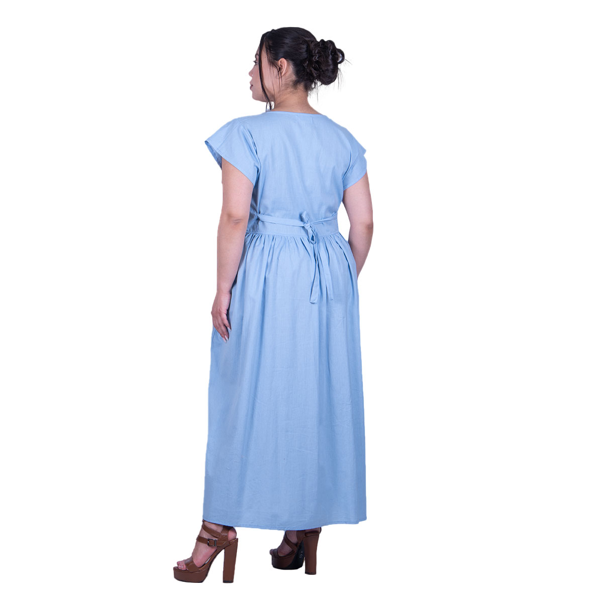 Platinum Φόρεμα Γαλάζιο Γυναικείο Σεμιζιέ Κοντομάνικο Μακρύ Βαμβακολινό All Day – 72528-BL
