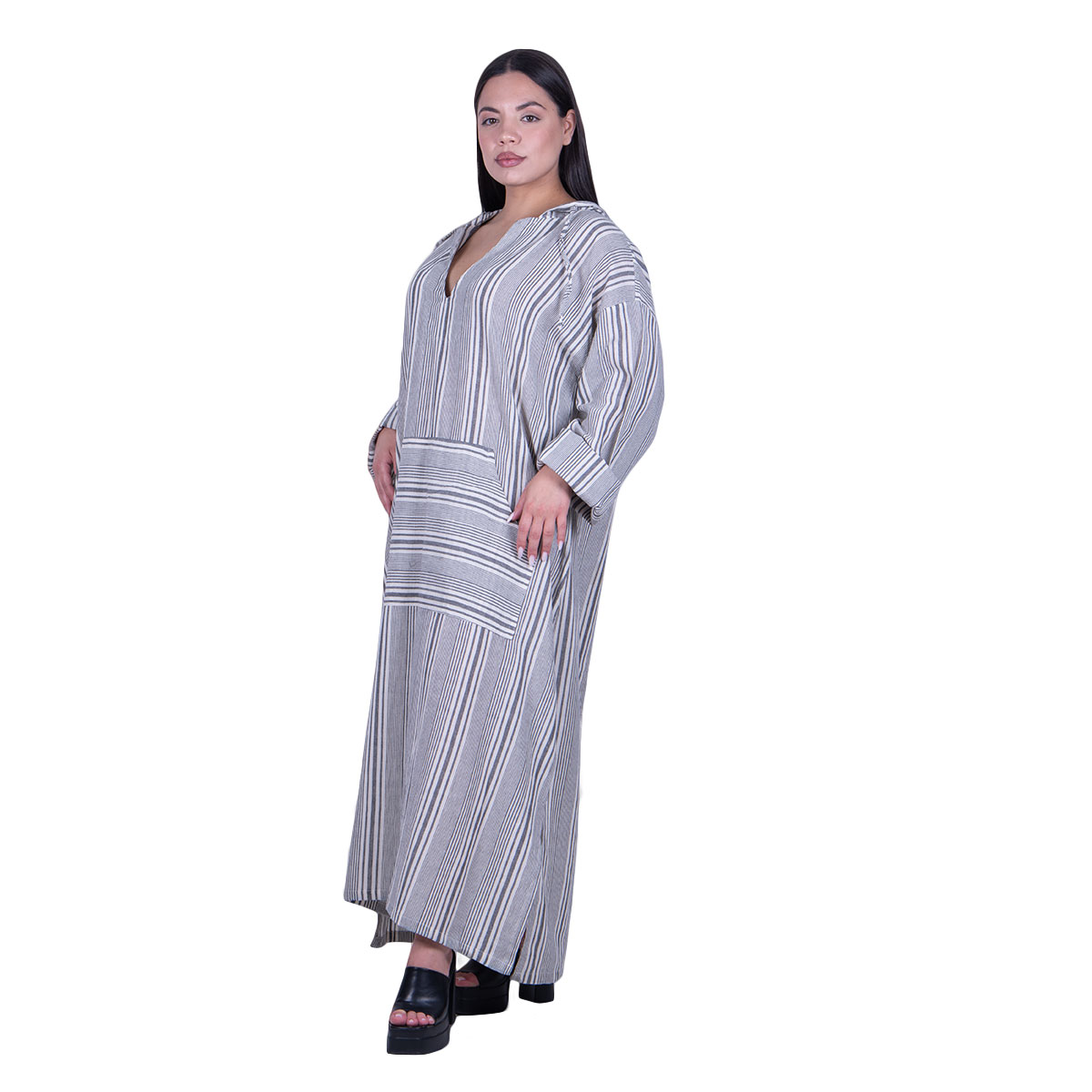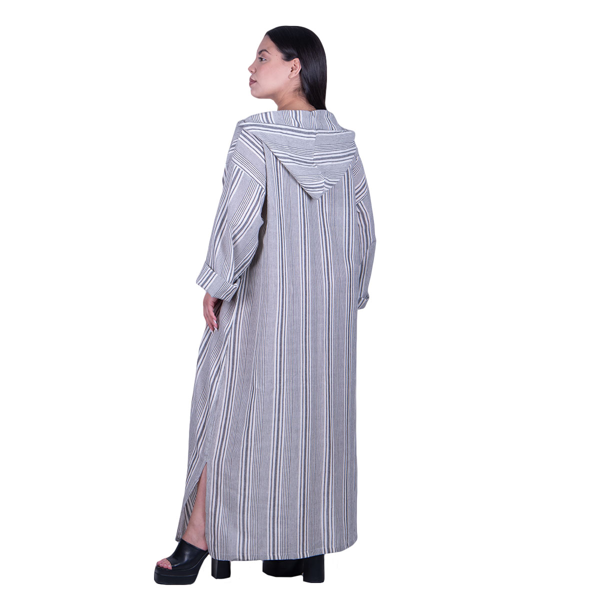 Platinum Φόρεμα – Καφτάνι Γκρι Με Λευκό Ριγέ Γυναικείο Mακρύ Casual Με Κουκούλα Free Size – 12-MG