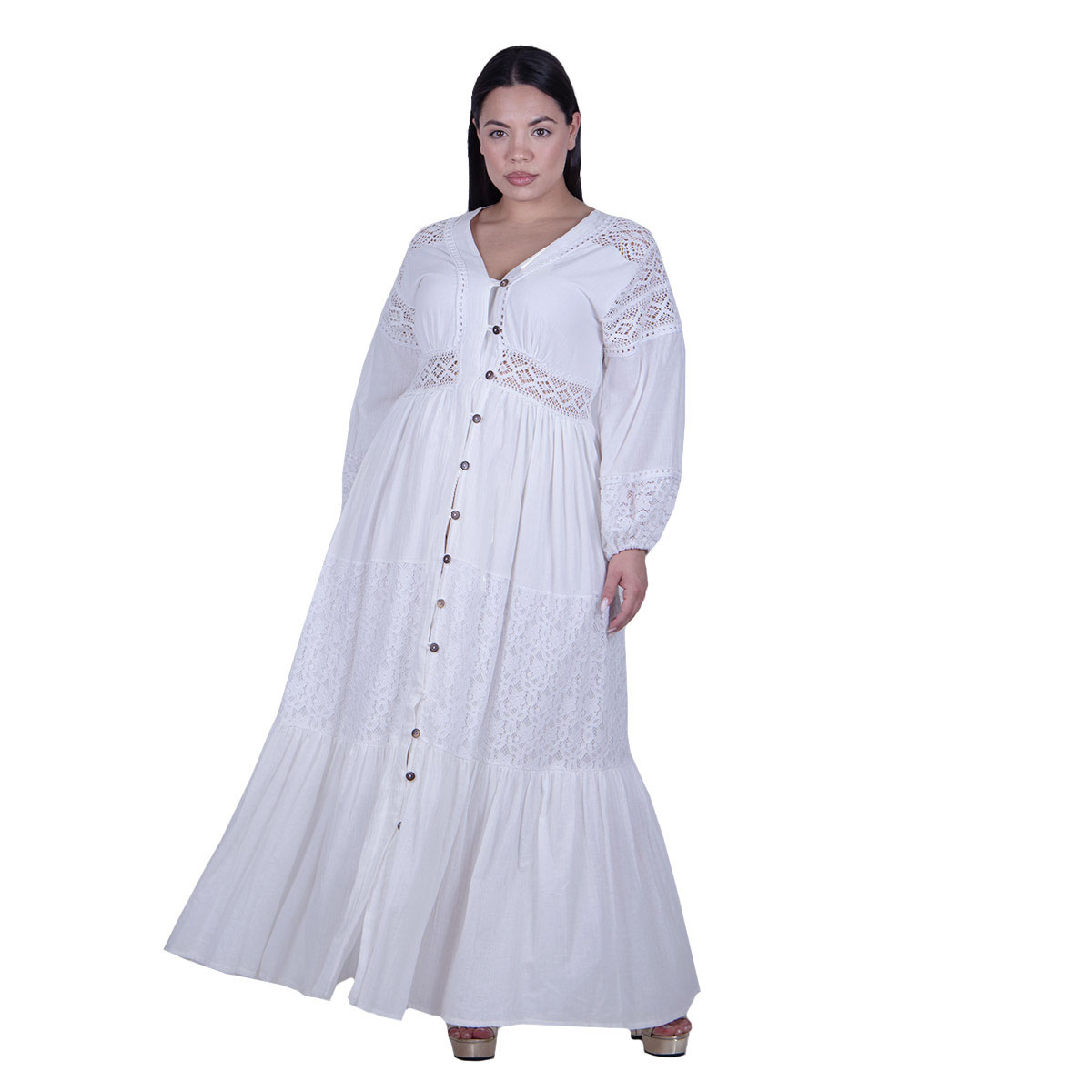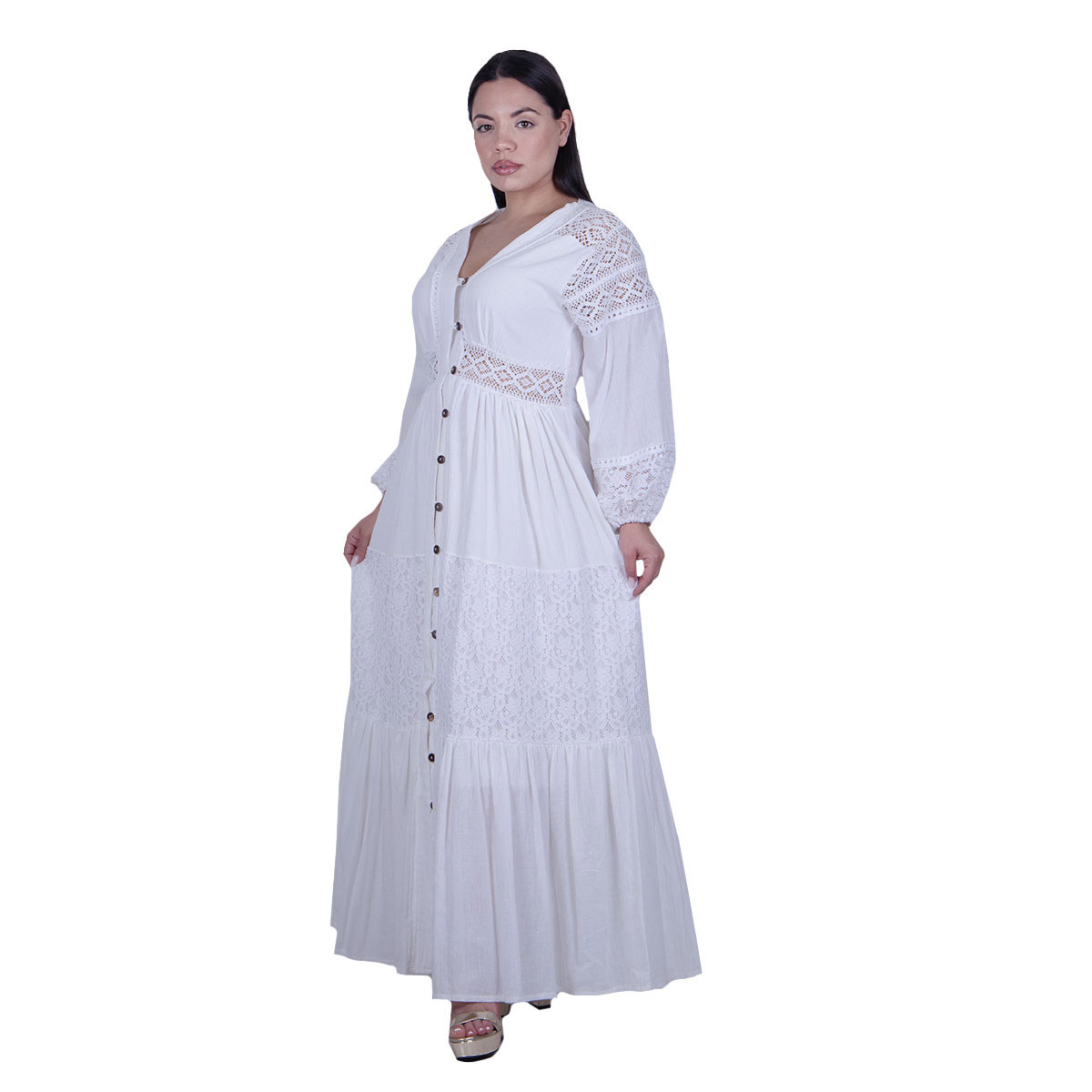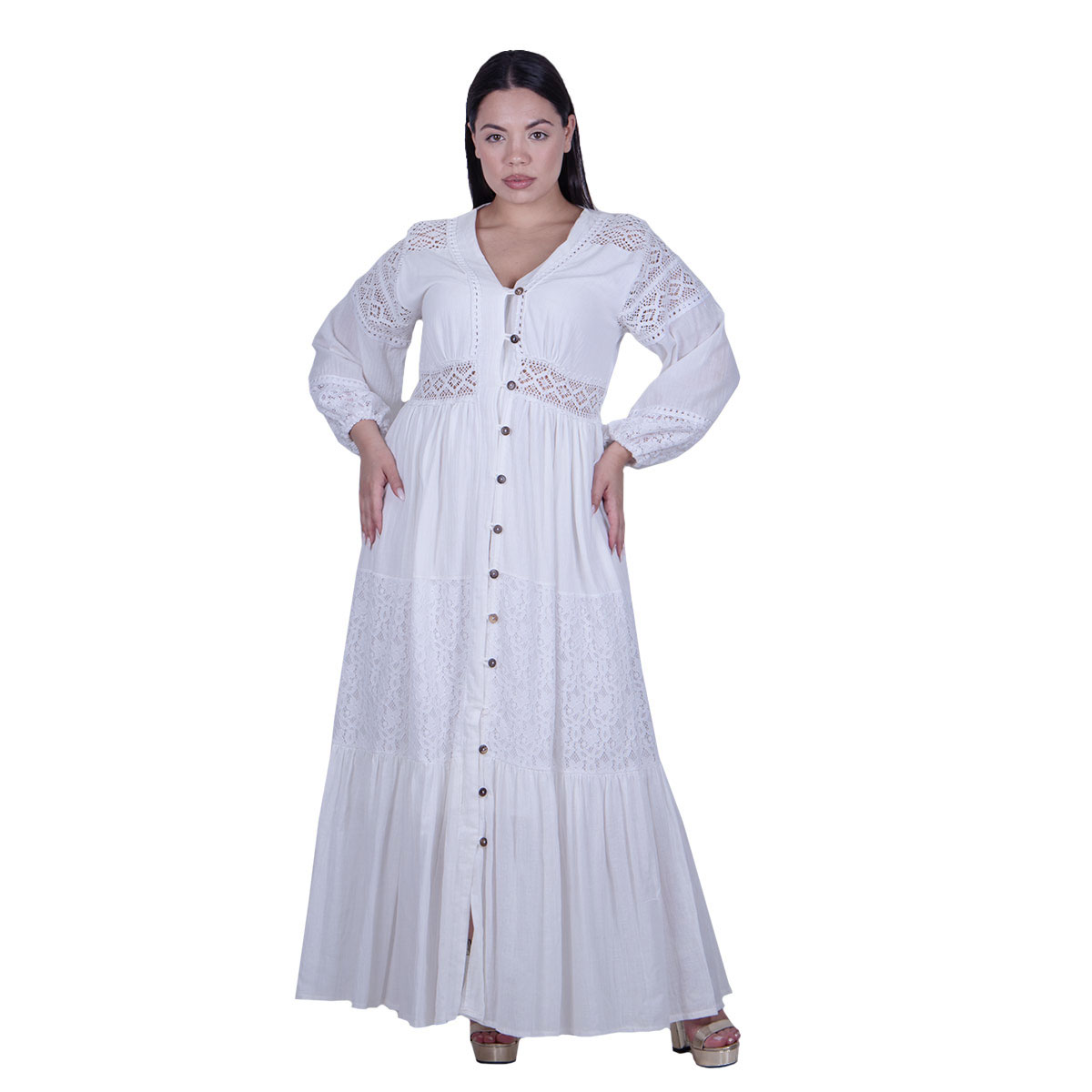 Platinum Φόρεμα – Κιμονό Λευκό Γυναικείο Maxi Με Κιπούρ Δαντέλα & Κουμπιά All Day – SAR-62002-W