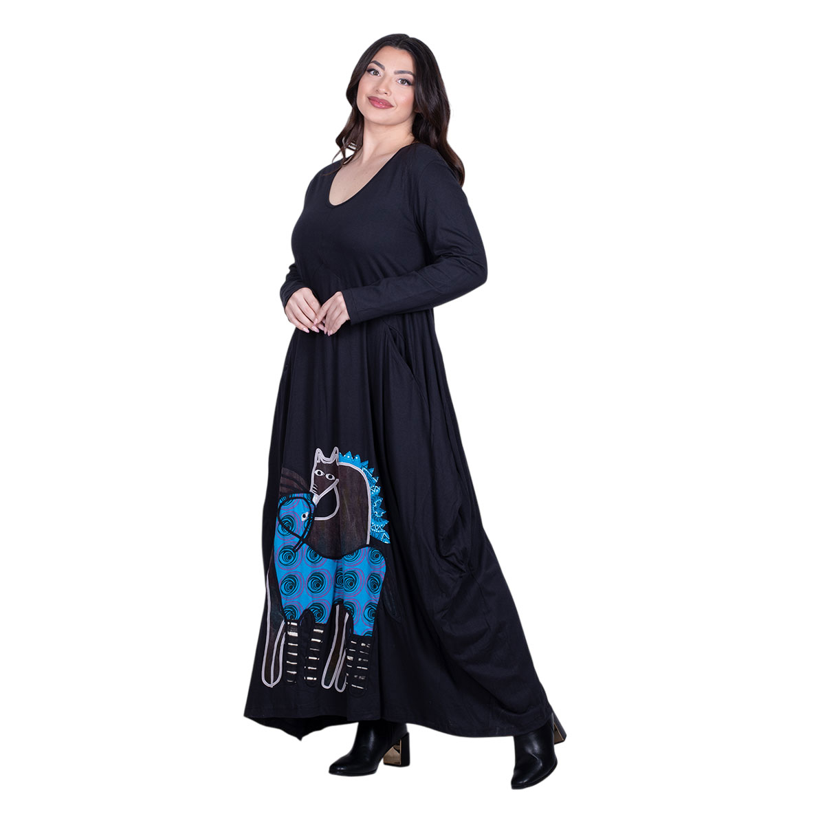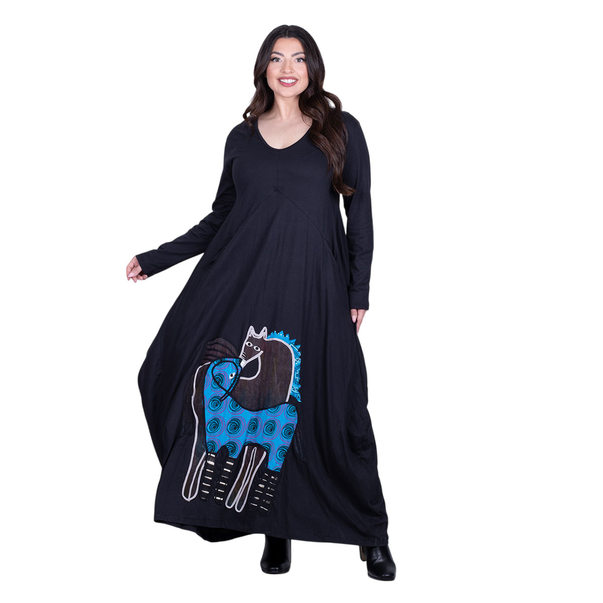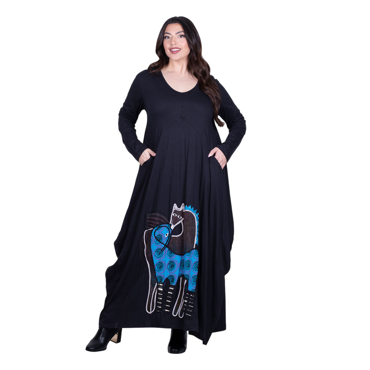 Platinum Φόρεμα Μαύρο Γυναικείο Απλικέ Maxi ”Ερωτευμένα Άλογα Patchwork” All Day – PL-233-BC