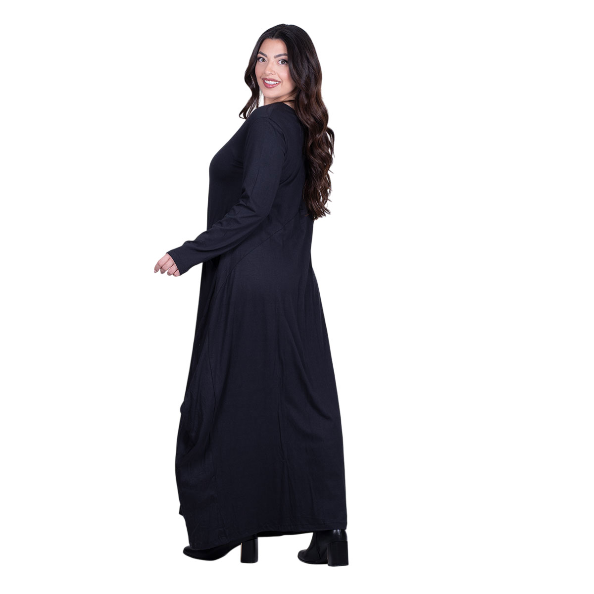 Platinum Φόρεμα Μαύρο Γυναικείο Midi Ασύμμετρο Mακρυμάνικο Με Πλισέ – 1017-ITSXL