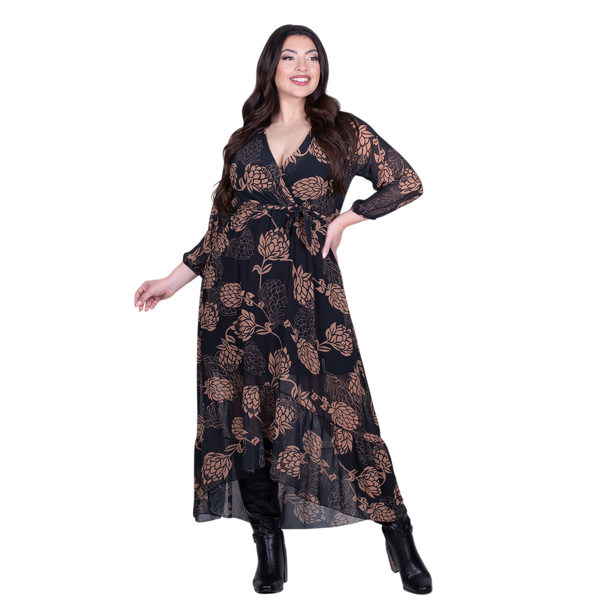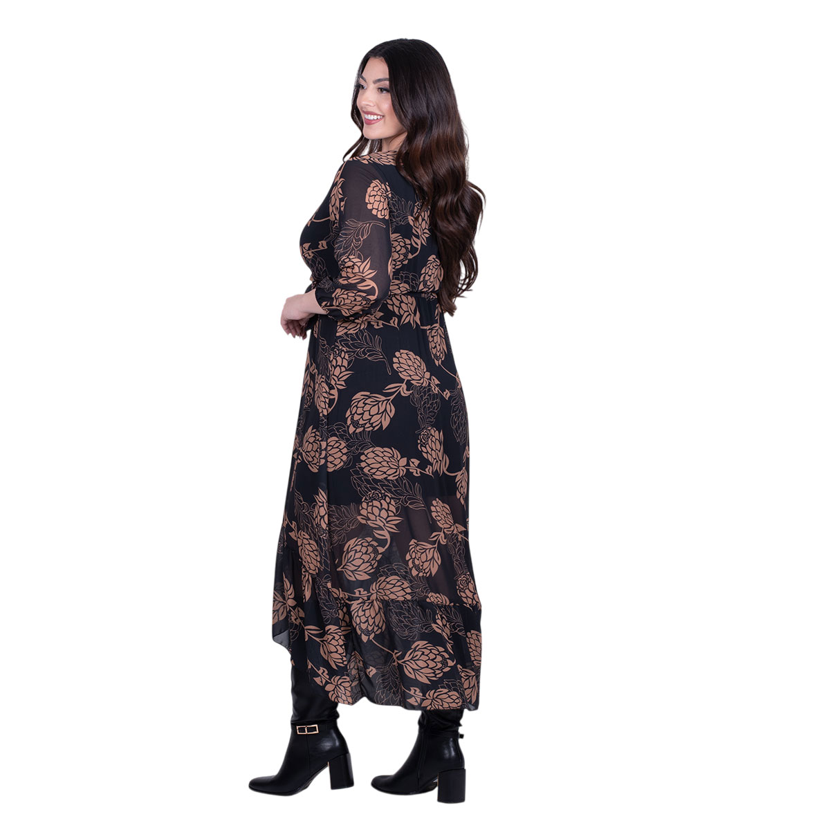 Platinum Φόρεμα Μαύρο Με Μπεζ Εμπριμέ Γυναικείο Κρουαζέ Klos All Day Free Size – IT-3824