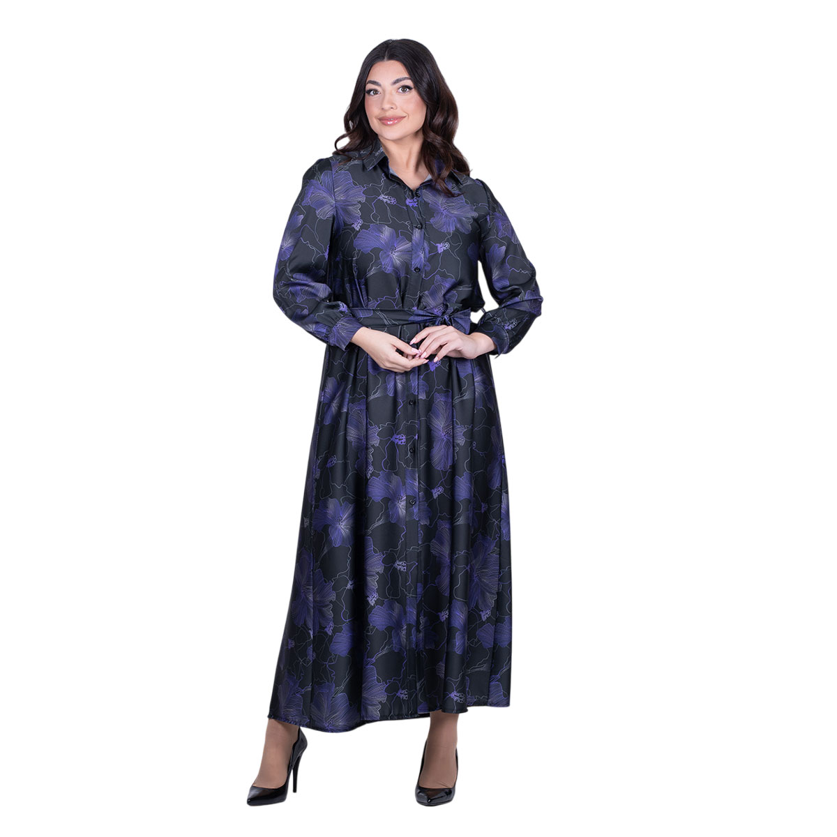 Platinum Φόρεμα Μαύρο Με Μωβ Σχέδια Γυναικείο Μακρύ Με Κουμπιά All Day Free Size – 193-GU