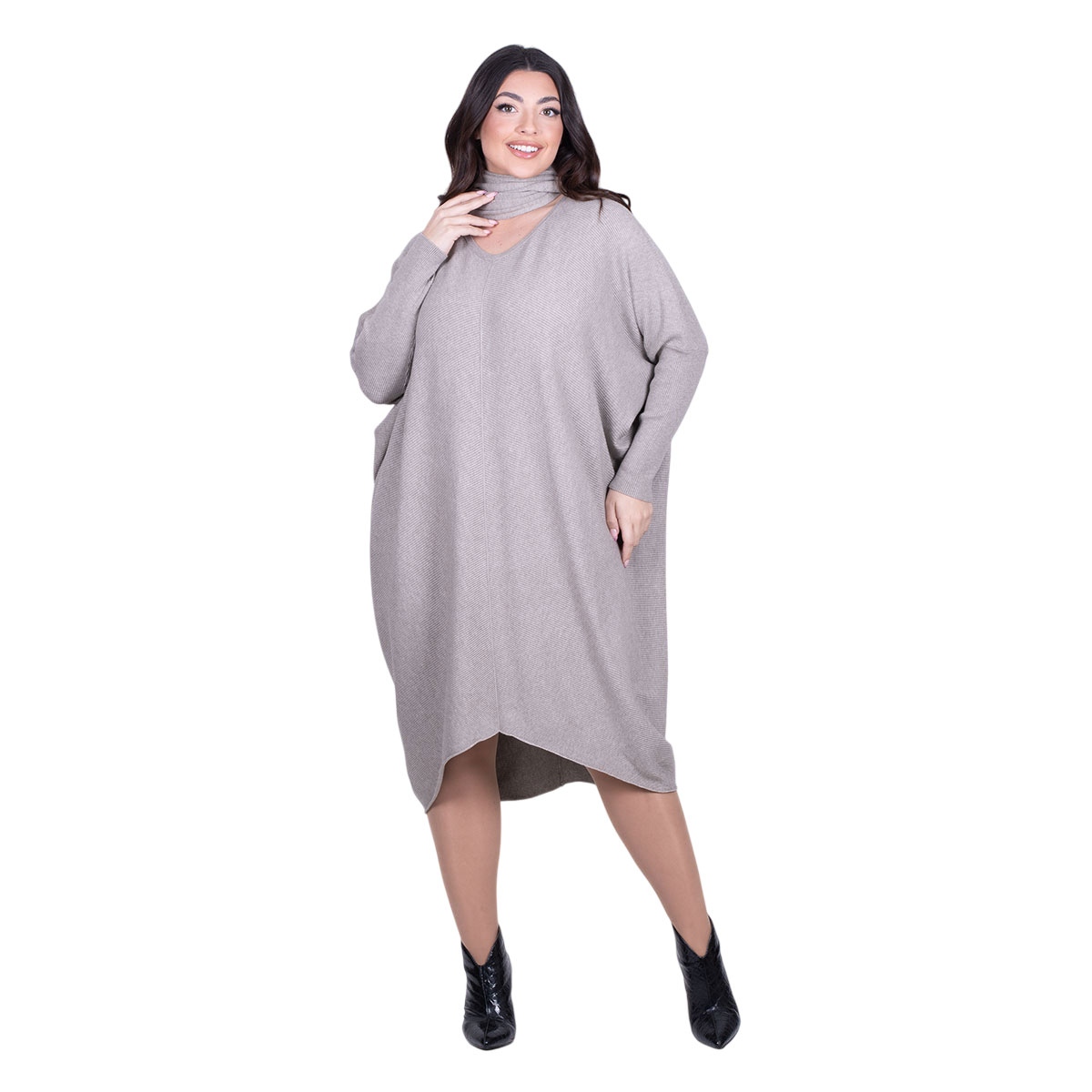 Platinum Φόρεμα Μόκα Γυναικείο Casual Φαρδύ Midi Σετ Με Κασκόλ All Day Free Size – IT-036-42-BG