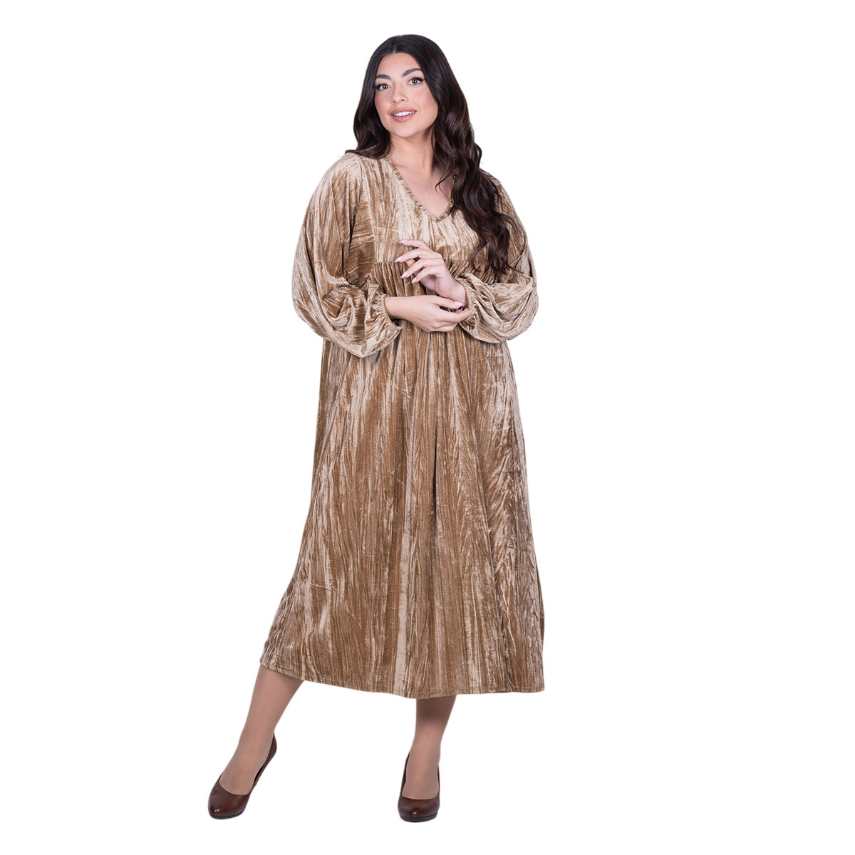 Platinum Φόρεμα Μπεζ – Χρυσό Γυναικείο Μidi Ampir Velvet All Day Free Size – 10279-KD