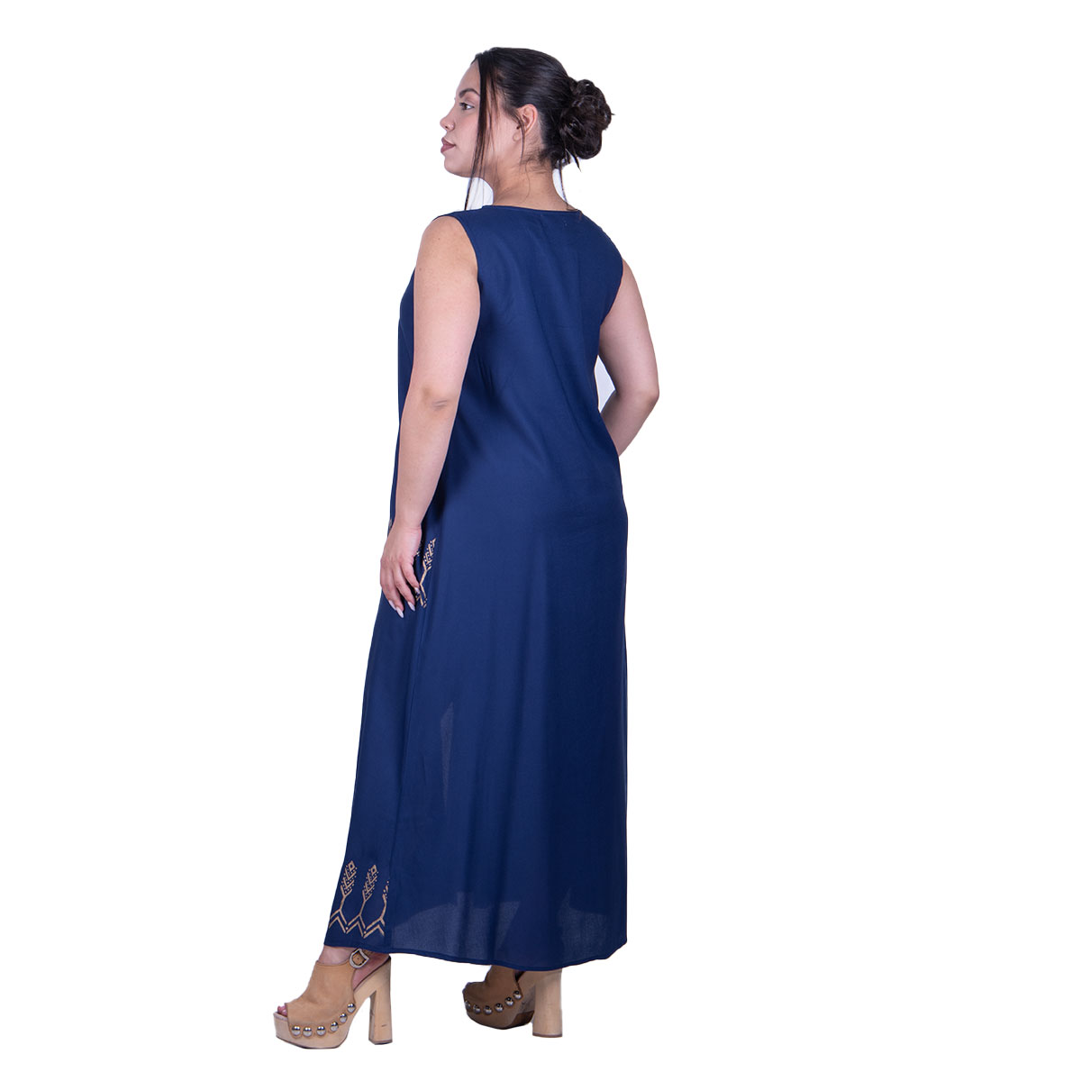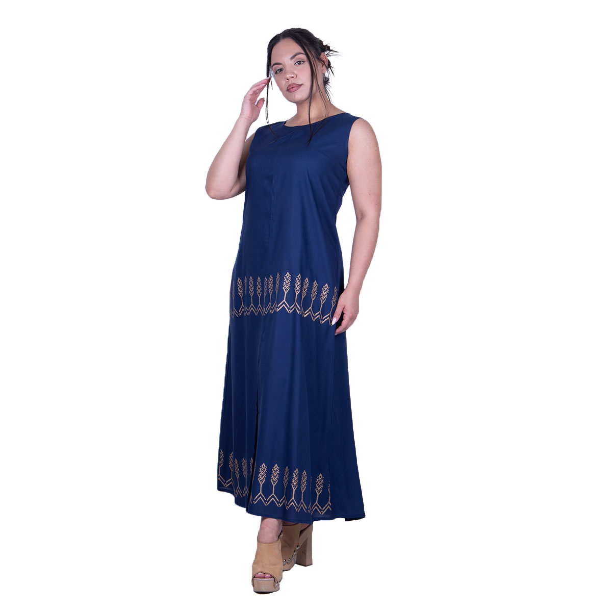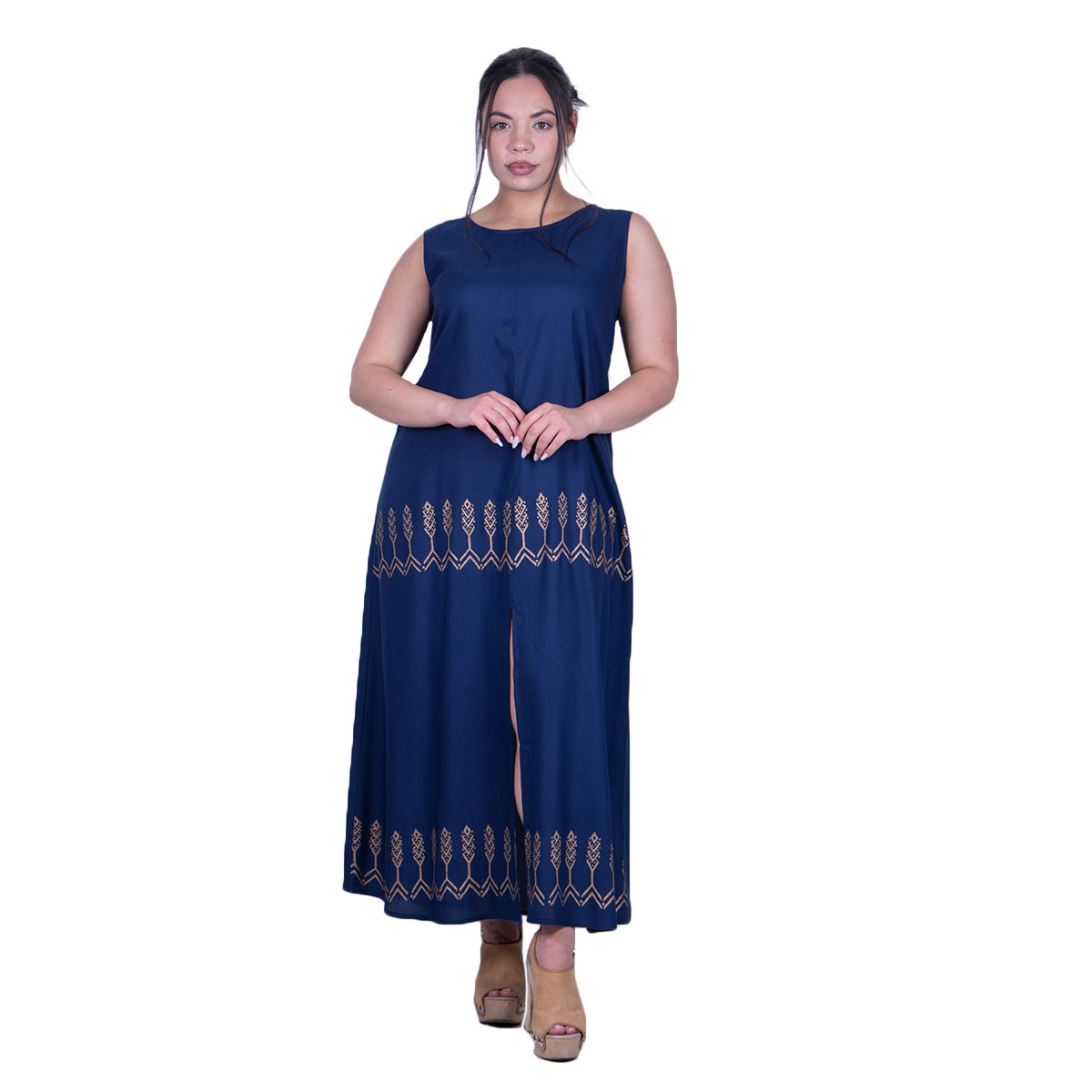 Platinum Φόρεμα Μπλε Γυναικείο Αμάνικο Midi Με Αρχαιοελληνικά Χρυσά Σχέδια All Day – 12544-BL