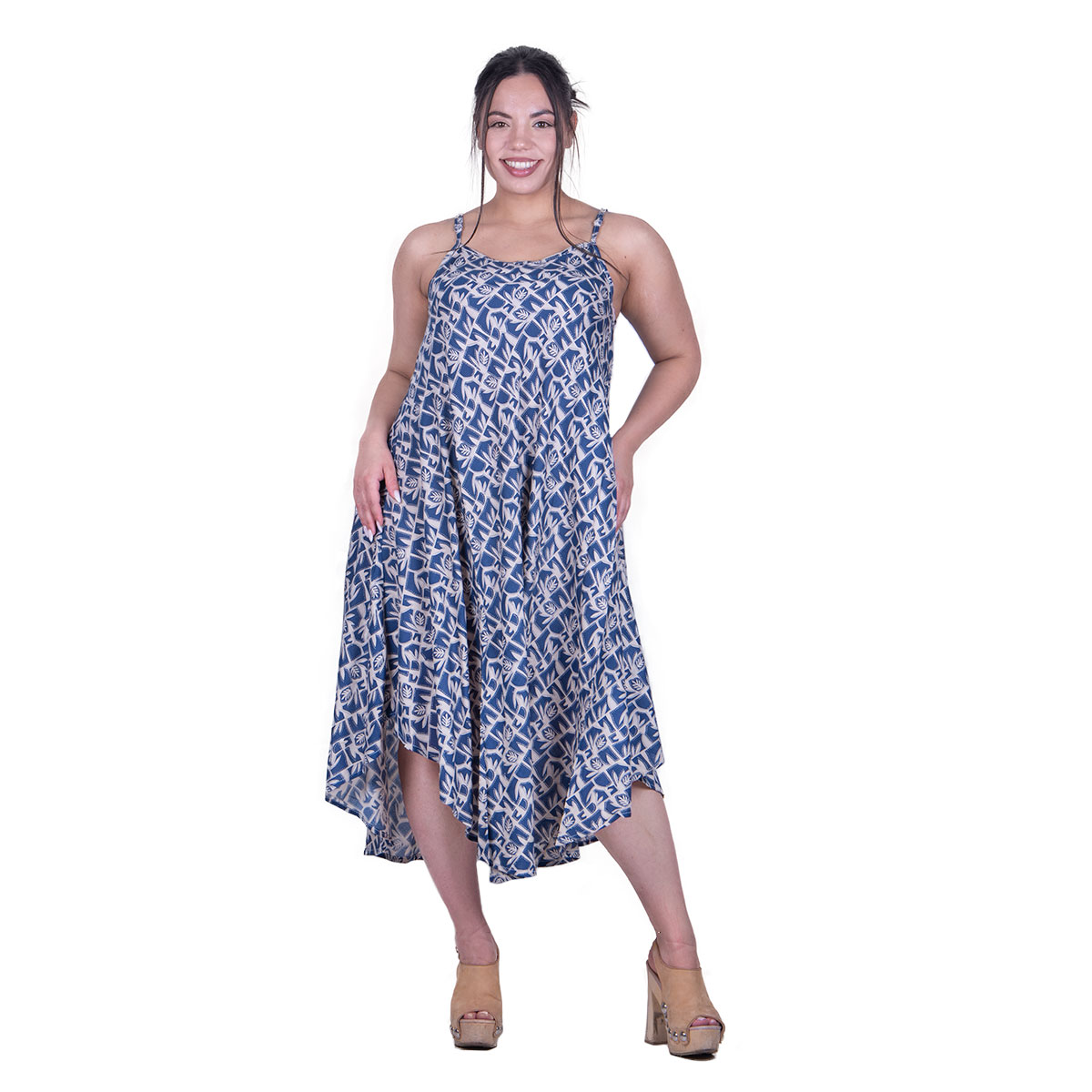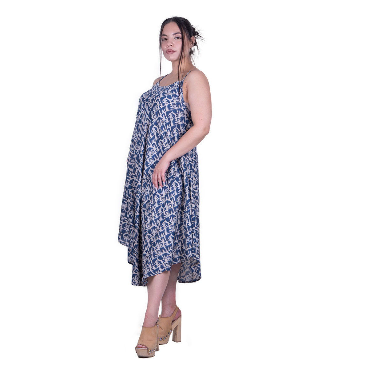 Platinum Φόρεμα Μπλε Με Μπεζ Γυναικείο Boho Σχέδιο Μidi Τιραντέ Ασύμμετρο Free Size – 32421