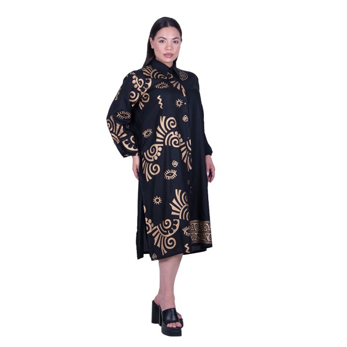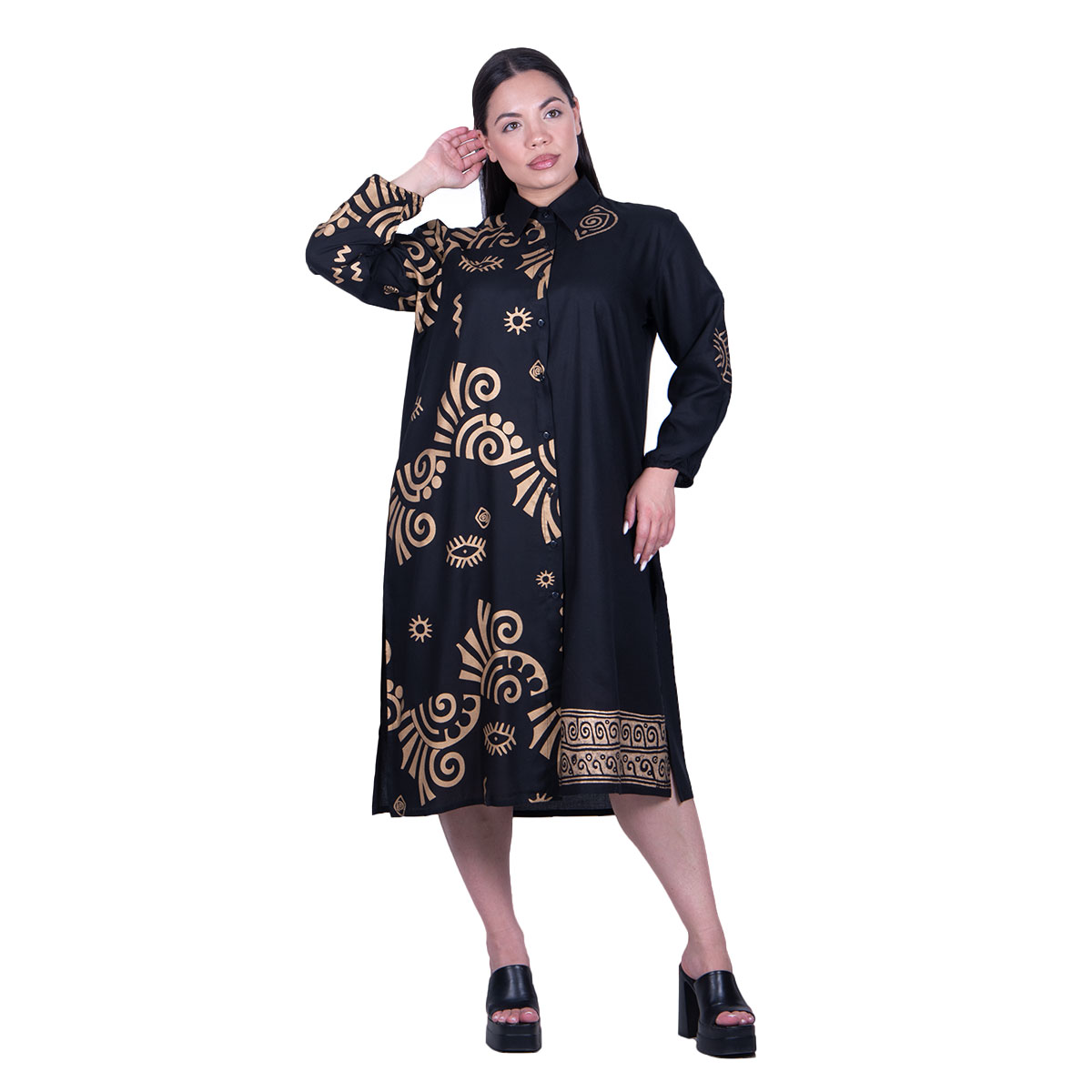 Platinum Φόρεμα – Πουκαμίσα Μαύρο Γυναικεία Με Χρυσά Αρχαιοελληνικά Σχέδια Free Size – 124106-BC