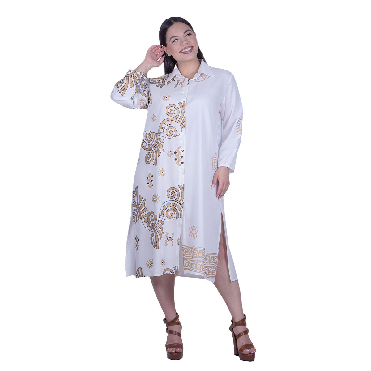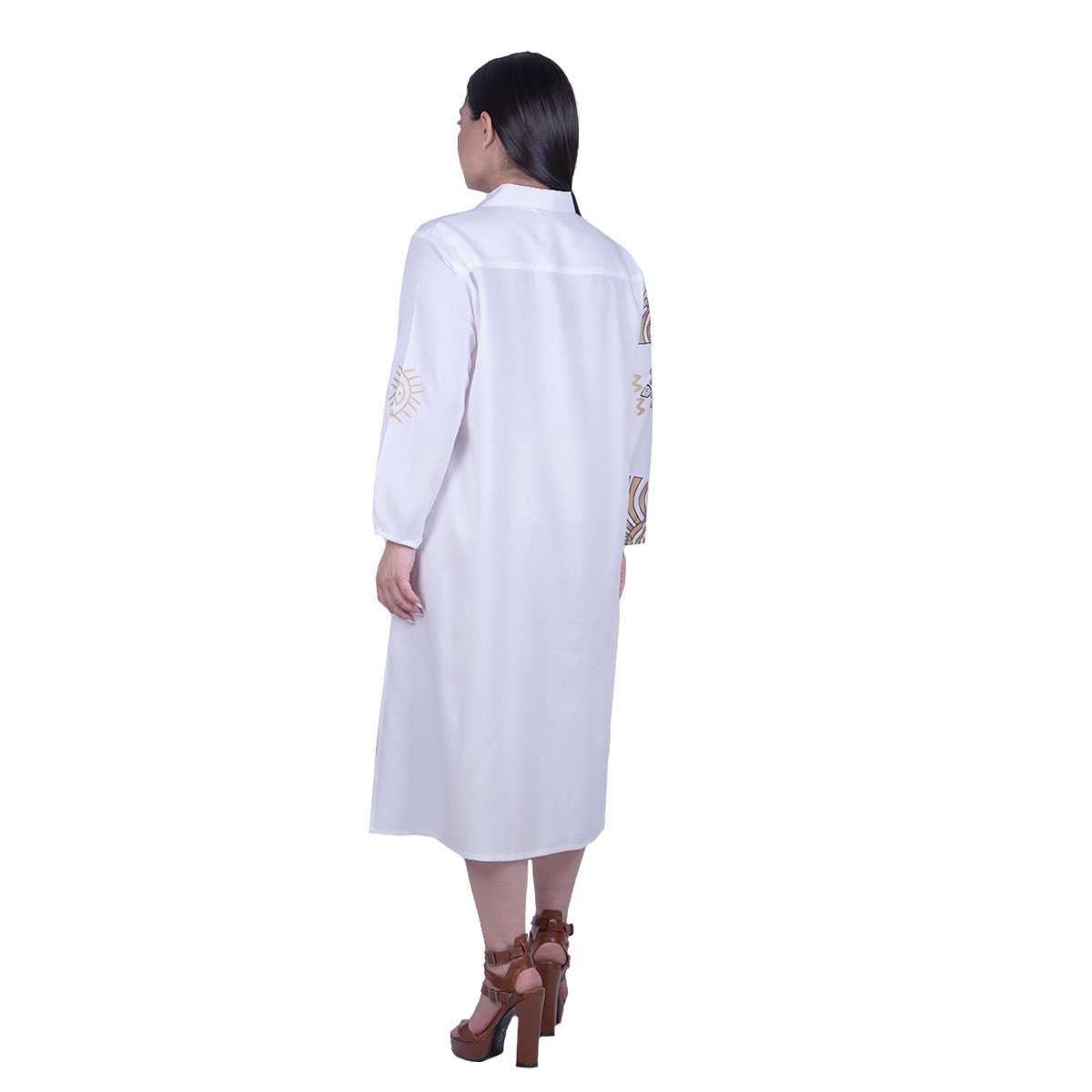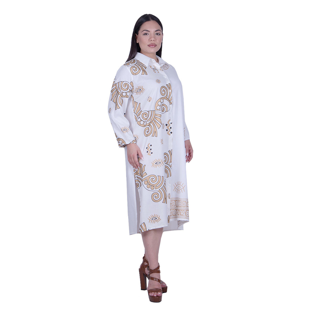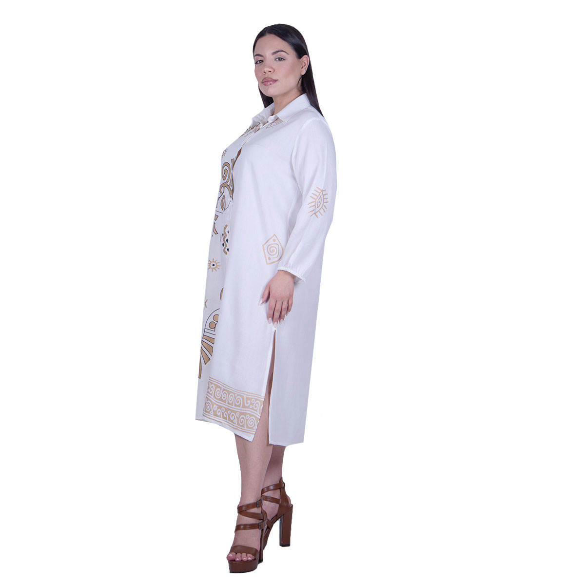 Platinum Φόρεμα – Πουκαμίσα Λευκό Γυναικείο Με Χρυσά Αρχαιοελληνικά Σχέδια Free Size – 124106-W